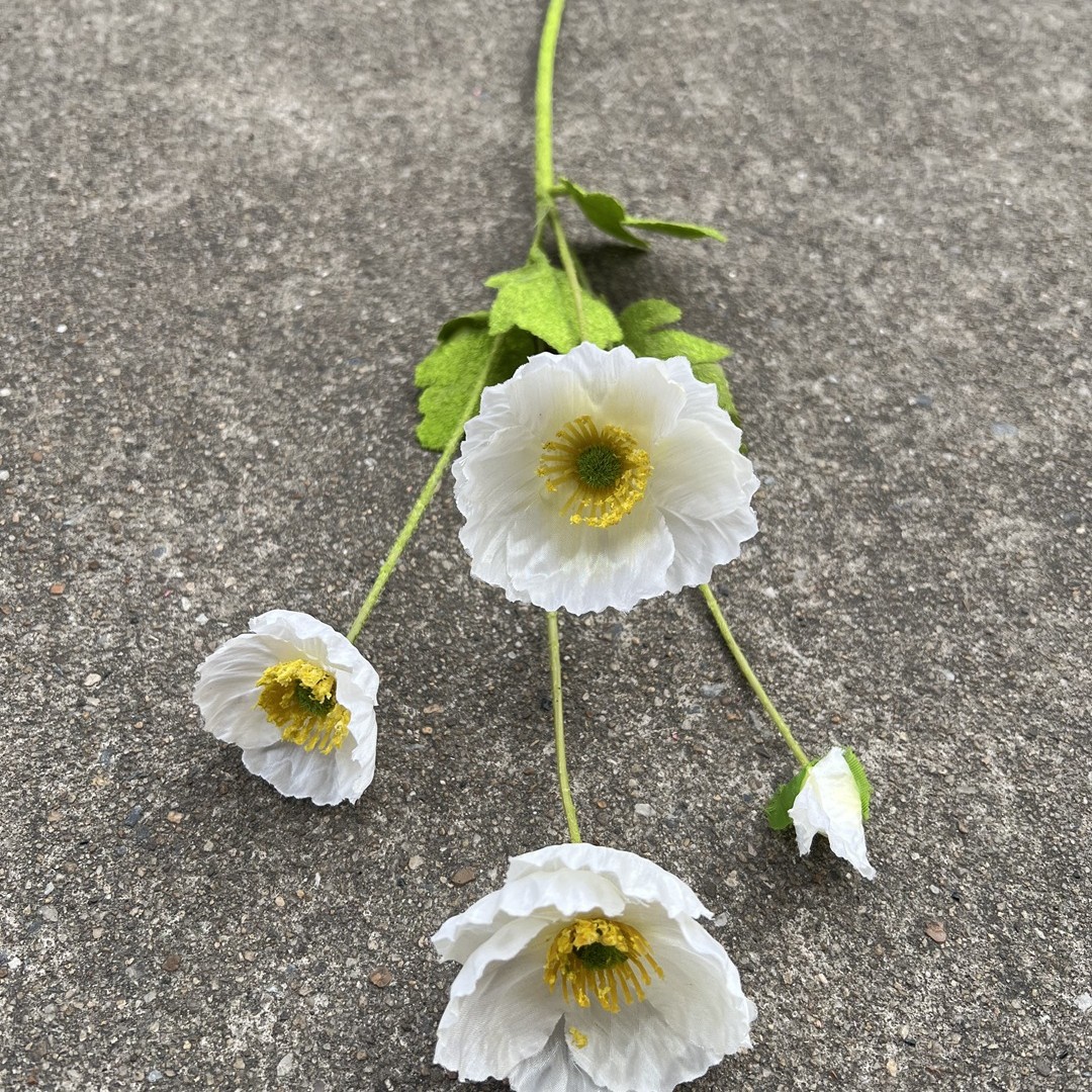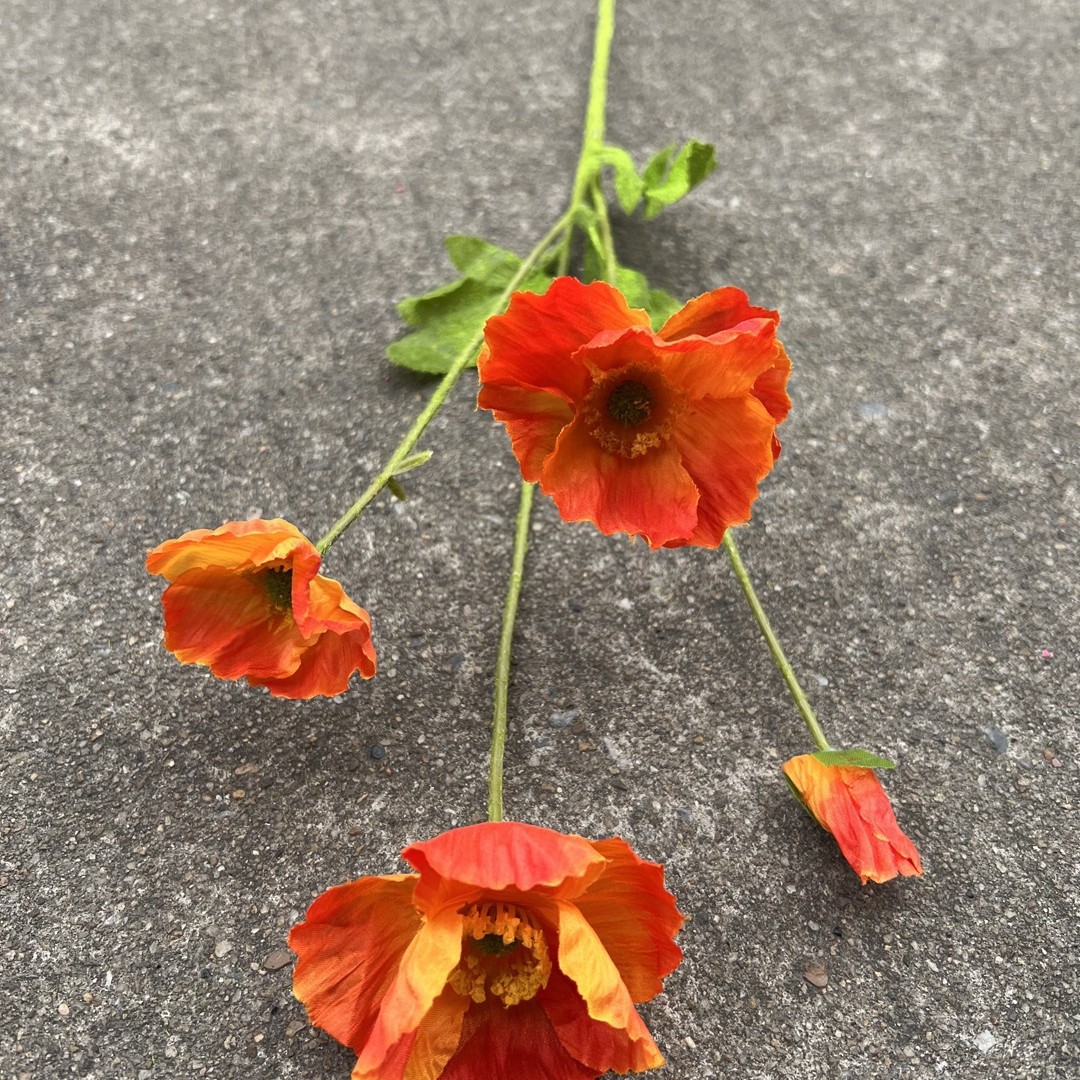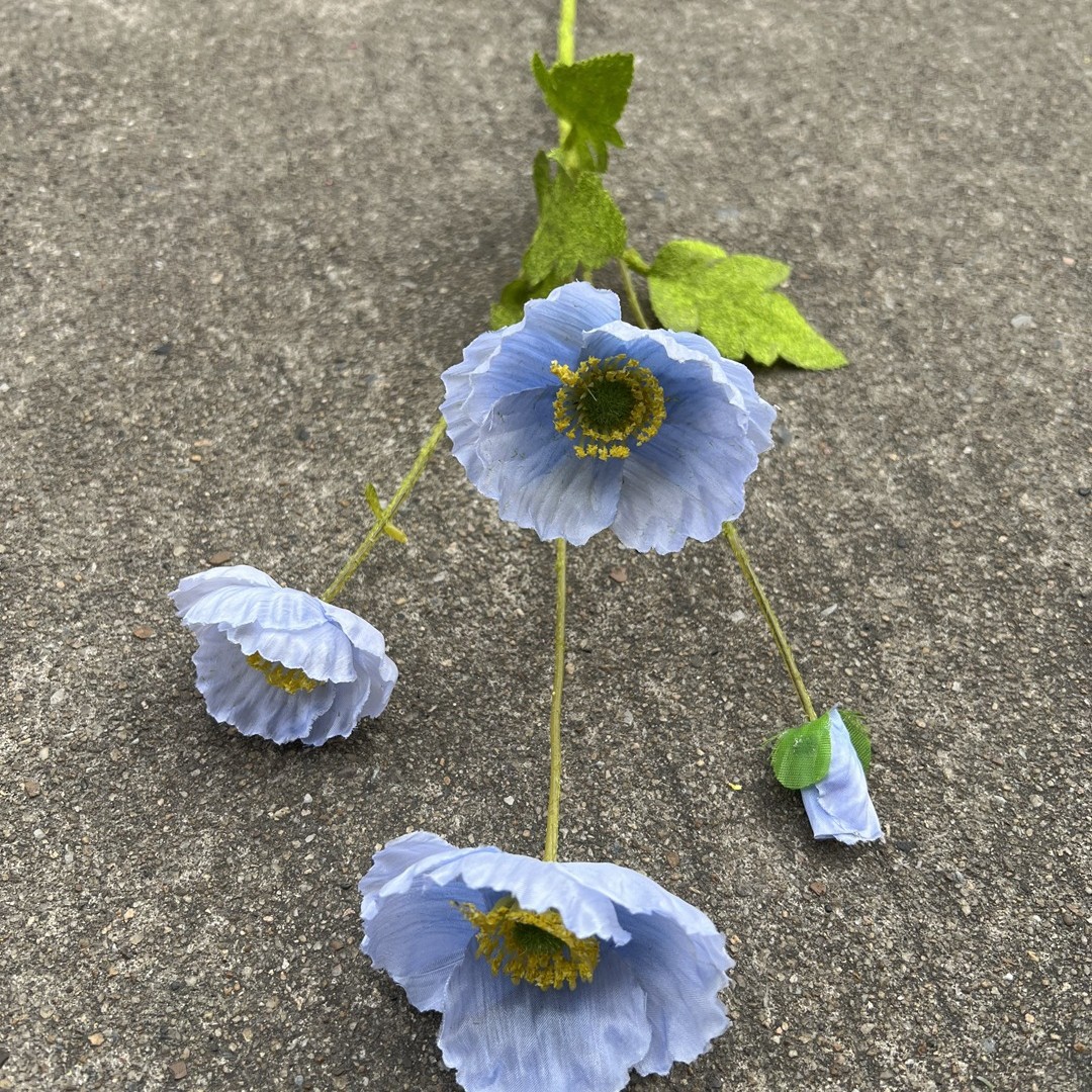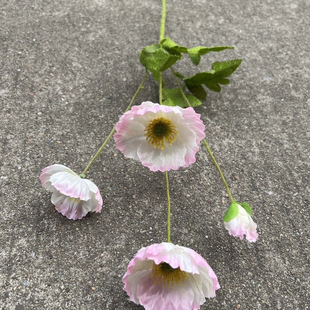 【品名】:4头植毛虞美人 【材质】:绢布 【规格】:总长度约58cm,共4个分叉,含3朵花和1个花苞,花头直径约7cm, 植毛杆子,更高仿。叶子若干。 【特点】:田园风格,点缀小花