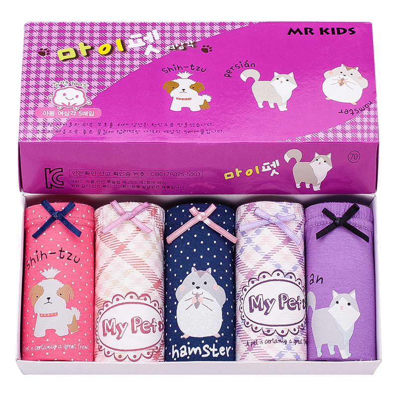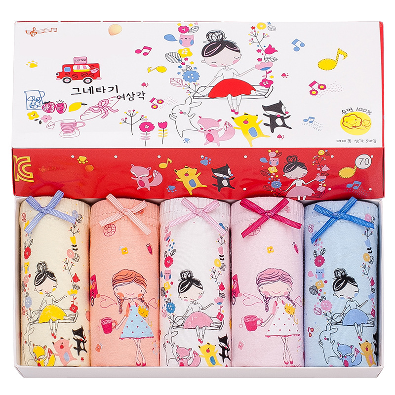 한국 스타일 어린이 면 여아 속옷 어린이 만화 박스형 팬티 2-11 세 아기를위한 어린이 속옷 속옷