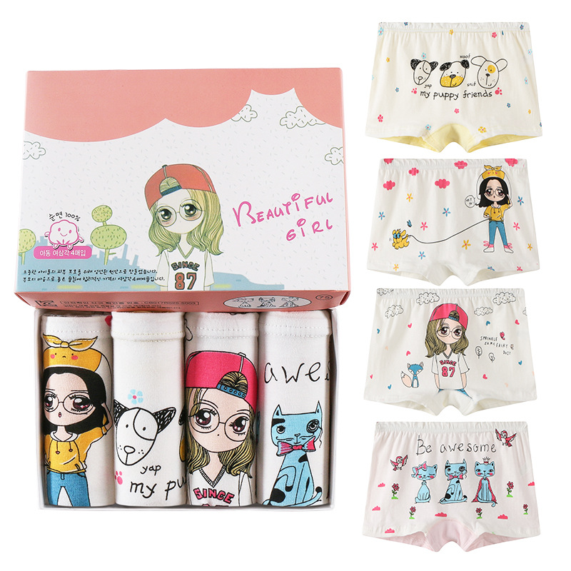한국 스타일 어린이 면 여아 속옷 어린이 만화 박스형 팬티 2-11 세 아기를위한 어린이 속옷 속옷스토어 가기