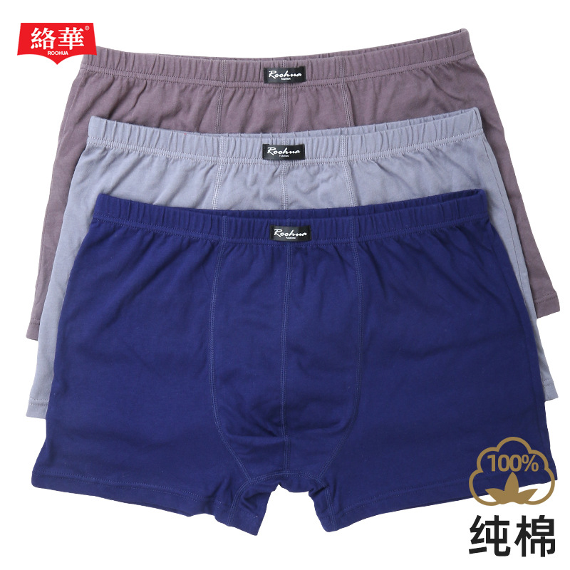 Luohua 남자 속옷 복서 면화 100 통기성 중간 허리 느슨한 단색 복서 바지