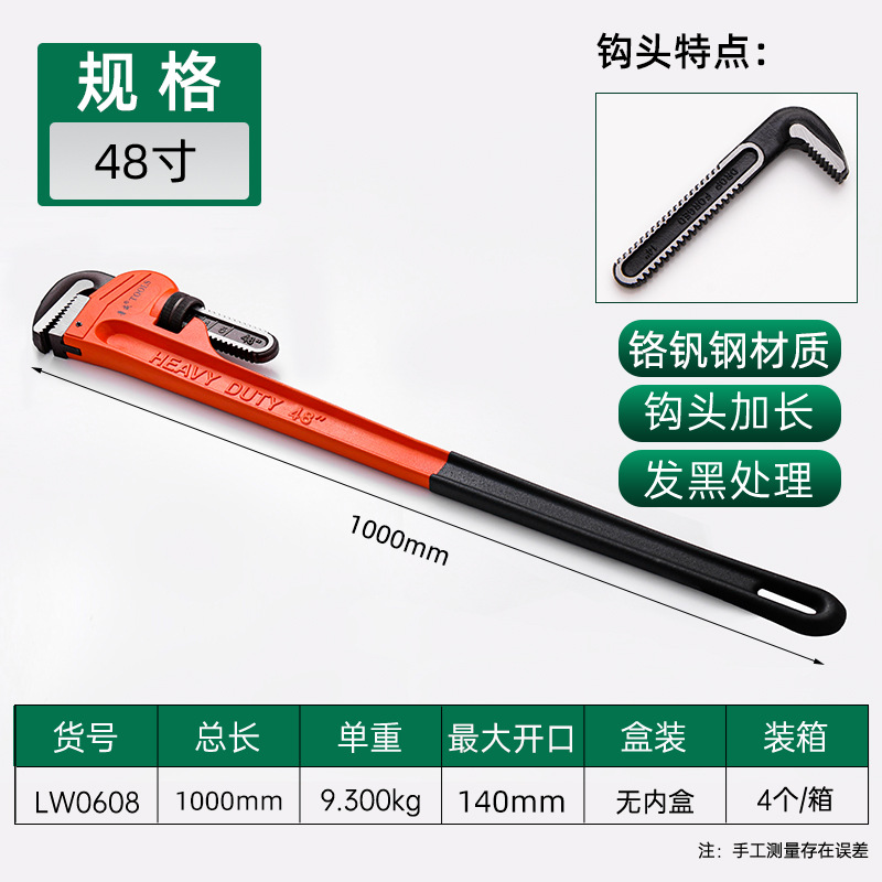 • Luwei 미국식 고강도 파이프 렌치 48inch 확장 후크 헤드(1200#4개입), 9.3kg