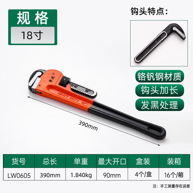 • Luwei 미국식 고강도 파이프 렌치 18inch 확장 후크 헤드(450 # 상자 4개, 상자 16개), 1.93kg