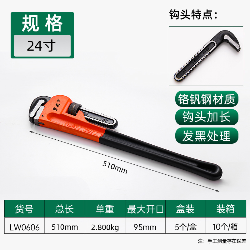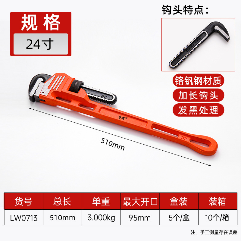 • Luwei 미국식 고강도 파이프 렌치 24inch 확장 후크 헤드(600#박스 5개, 박스 10개), 2.7kg