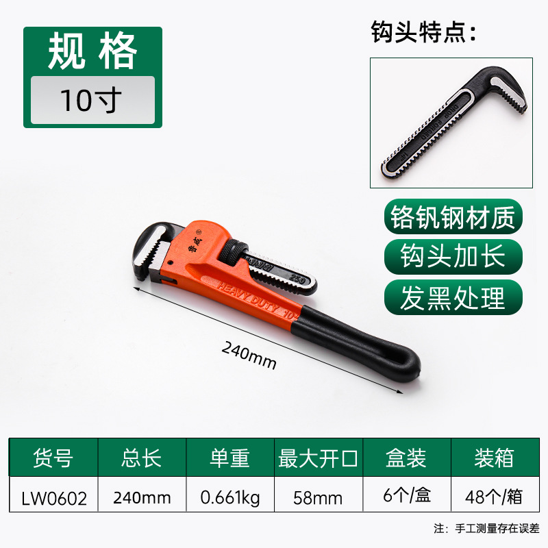 • Luwei 미국식 고강도 파이프 렌치 10inch 확장 후크 헤드(250#박스 6개, 박스 48개), 0.66kg