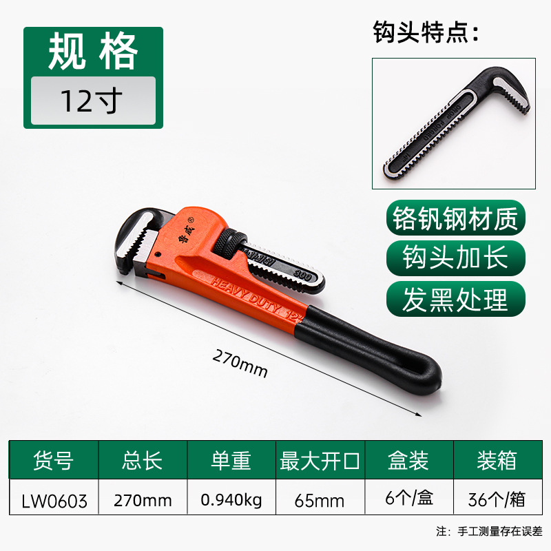 • Luwei 미국식 고강도 파이프 렌치 12inch 확장 후크 헤드(300#박스 6개, 박스 36개), 0.99kg