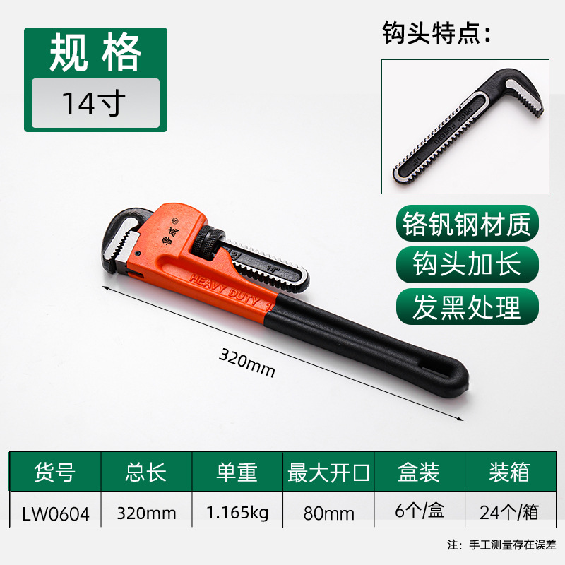 • Luwei 미국식 고강도 파이프 렌치 14inch 확장 후크 헤드(350#상자 6개, 상자 24개), 1.25kg
