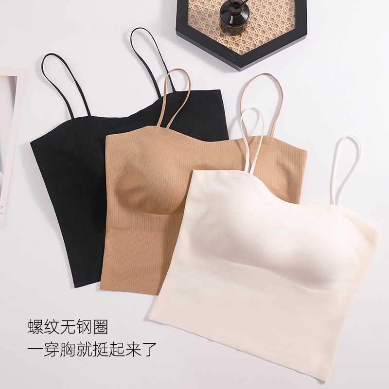 抖音直播爆款螺纹吊带背心夏季无钢圈固定杯一片式冰丝无痕内衣女