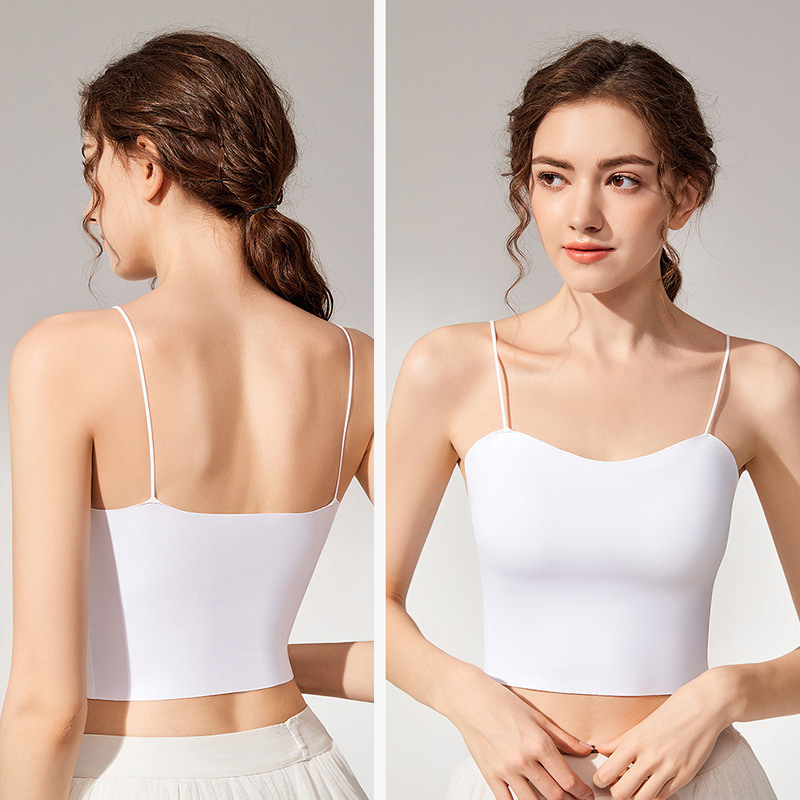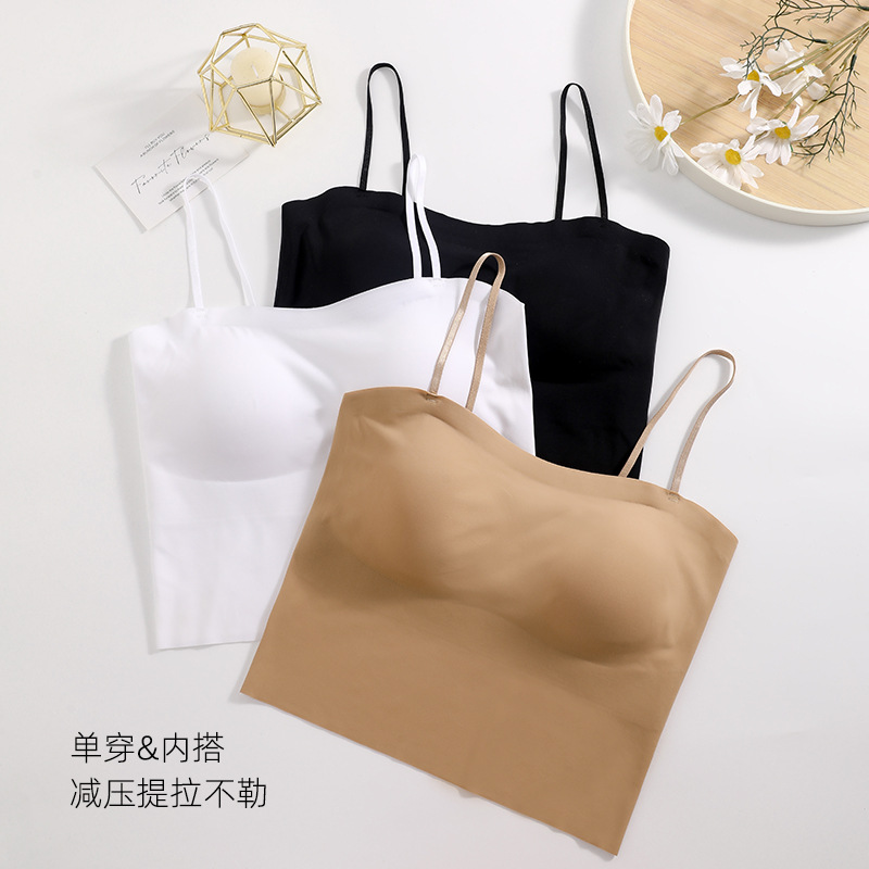 抖音网红直播爆款光板冰丝无痕吊带内衣免穿文胸带胸垫固定杯背心