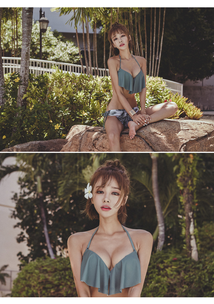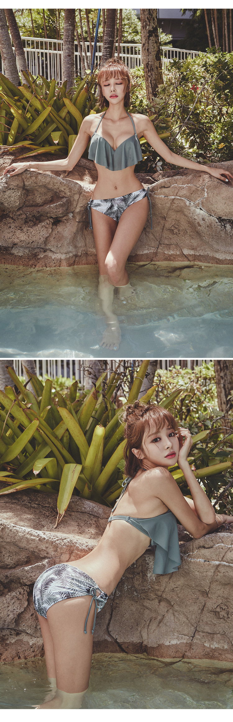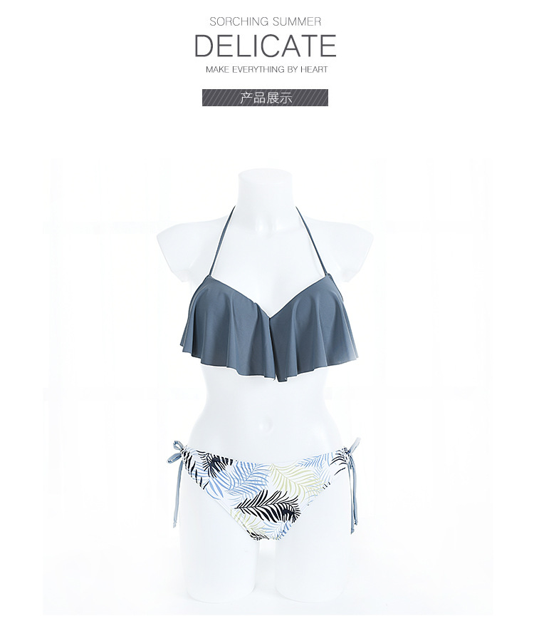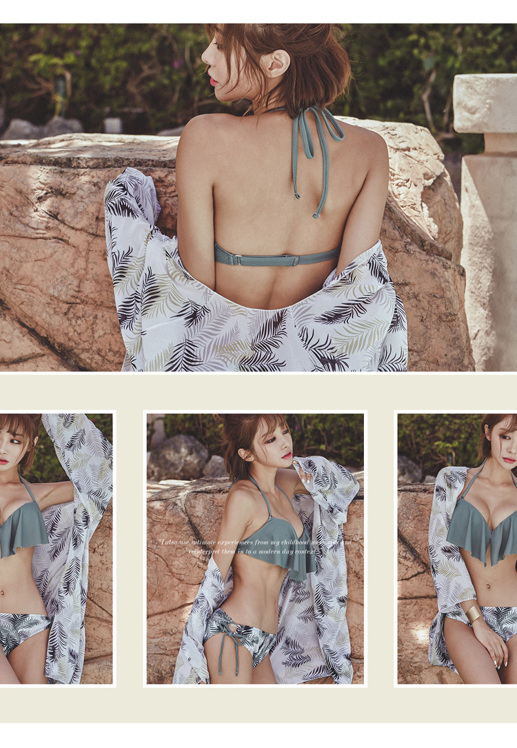 한국 비키니 새로운 블루 그레이 우아한 러플 푸시 업 가슴 쇼 수영복 섹시한 태양 방지 긴팔 외부 셔츠스토어 가기