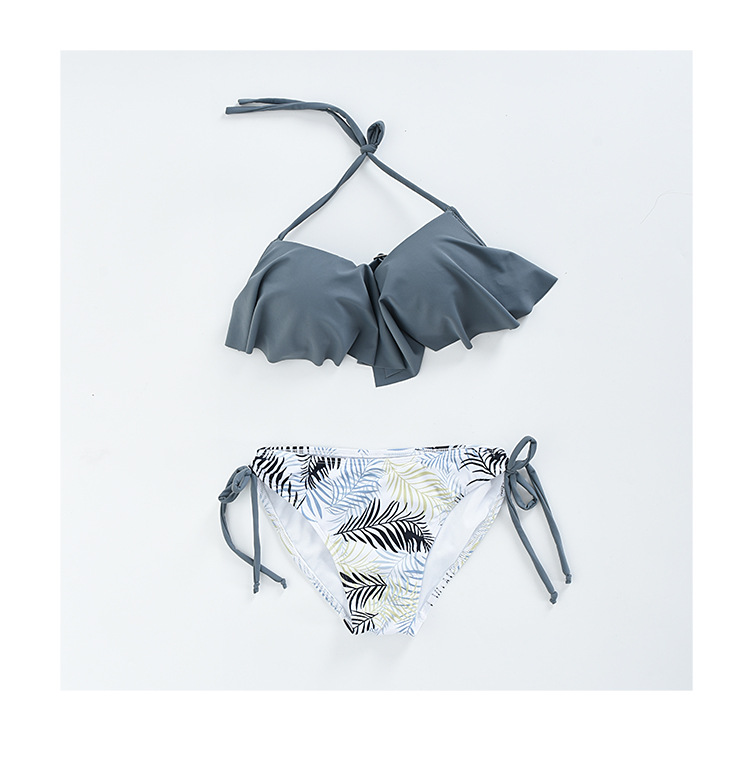 한국 비키니 새로운 블루 그레이 우아한 러플 푸시 업 가슴 쇼 수영복 섹시한 태양 방지 긴팔 외부 셔츠