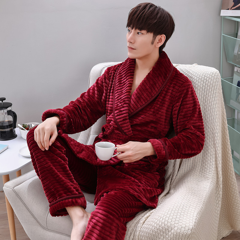 커플용 플란넬 잠옷 남녀공용 가을 겨울 두꺼운 대형 잠옷 세트 홈웨어 따뜻한 긴팔스토어 가기