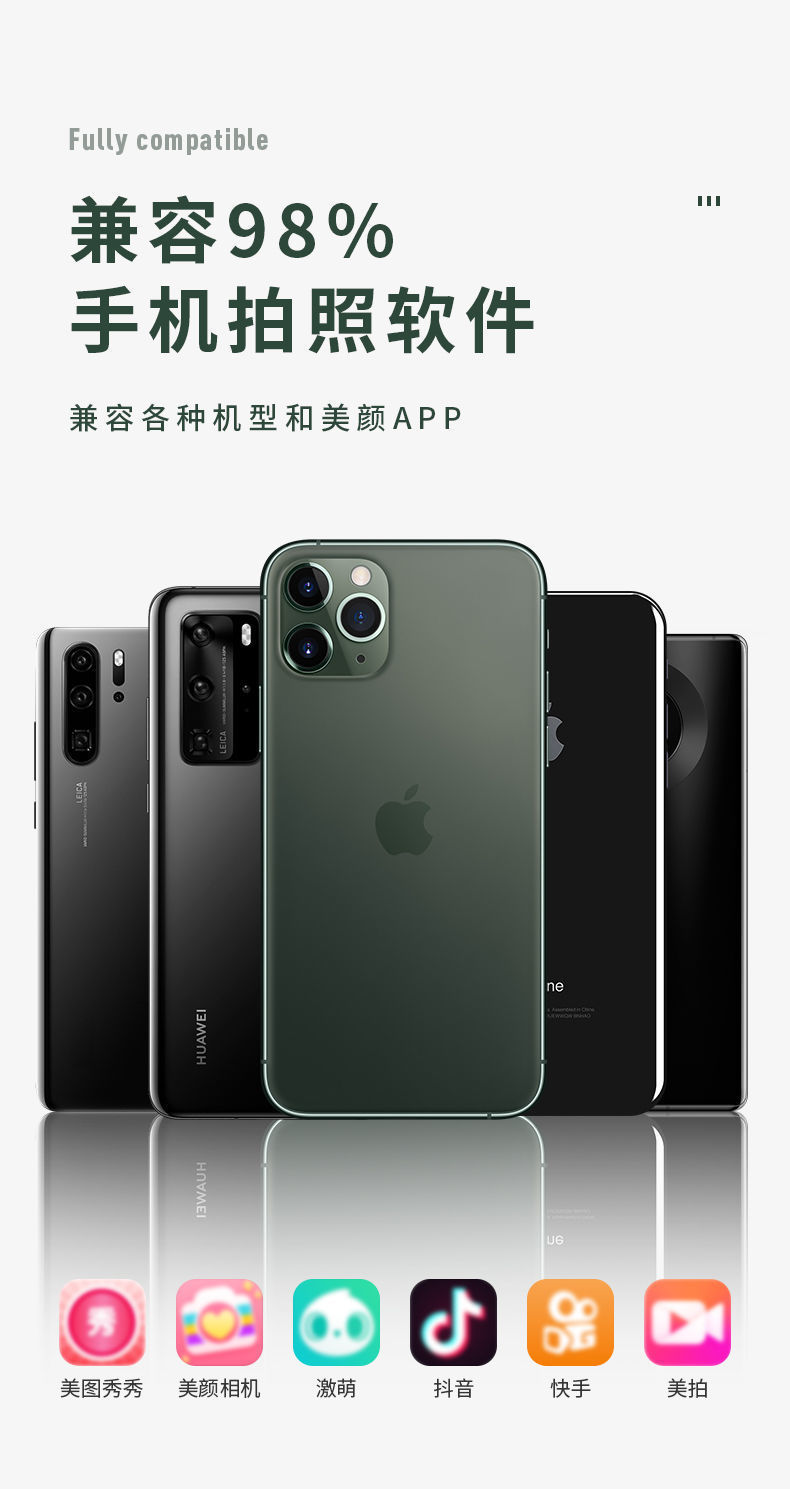 • JC25S 셀카봉 - 40CM 안정적인 촬영 [뷰티 램프가 있는 흰색]