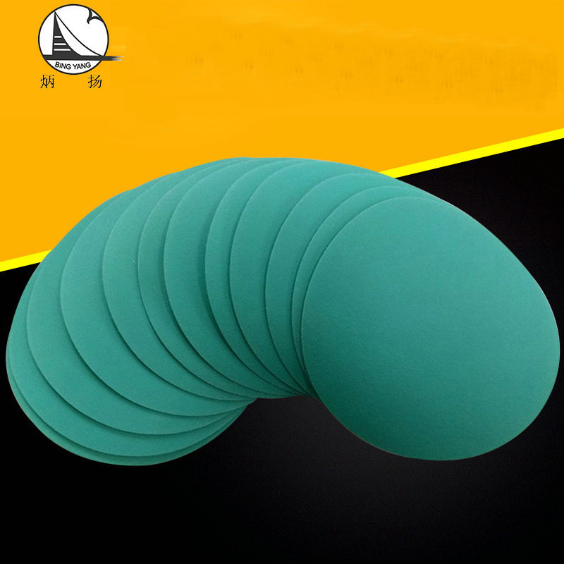 공장 도매 공급 5 인치 녹색 폴리 에스테르 필름 몰려 사포 전체 크기는 사용자 정의 크기 수 있습니다