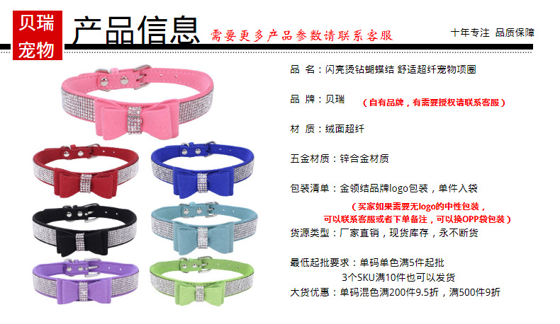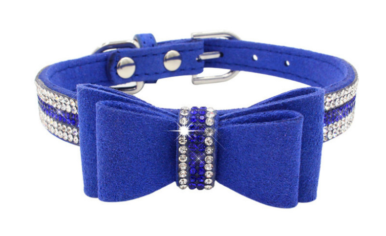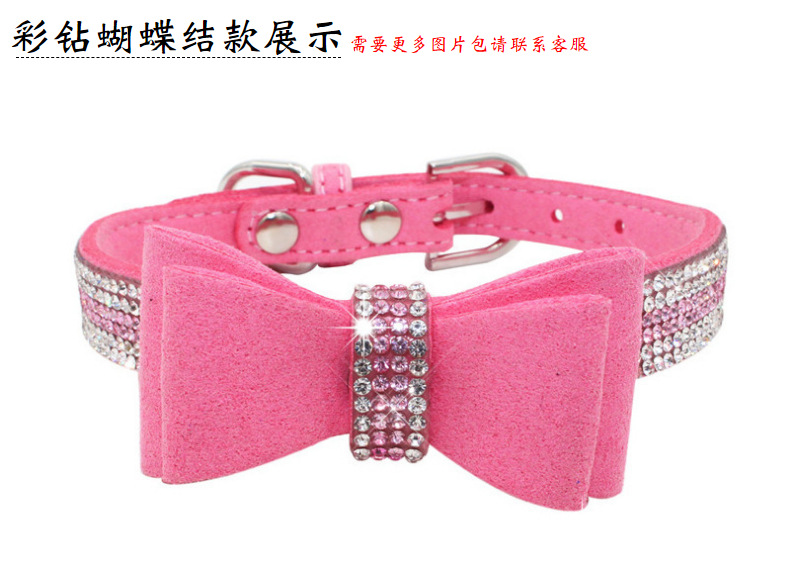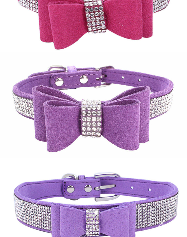 크로스 보더 활 애완 동물 칼라 빛나는 라인스톤 고양이 칼라 견인 로프 작은 마이크로 화이버 가죽 개 목걸이 도매스토어 가기