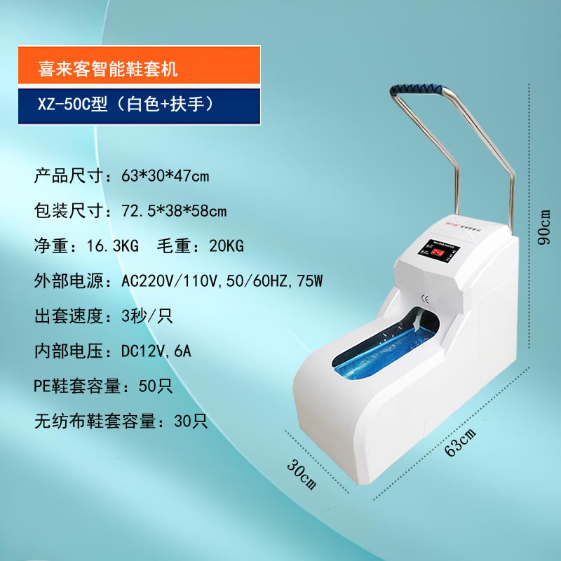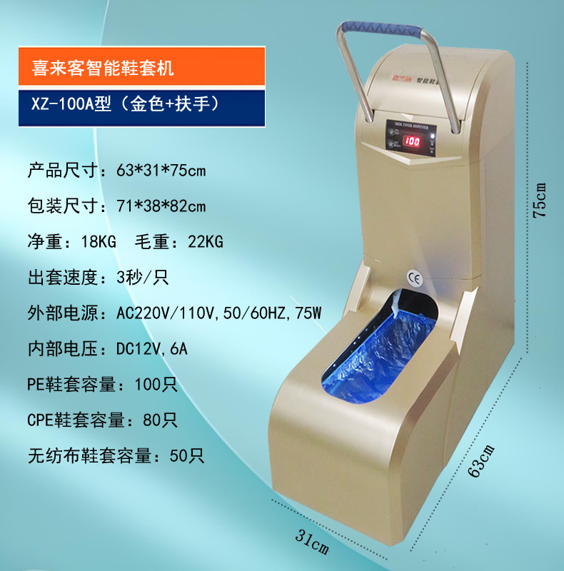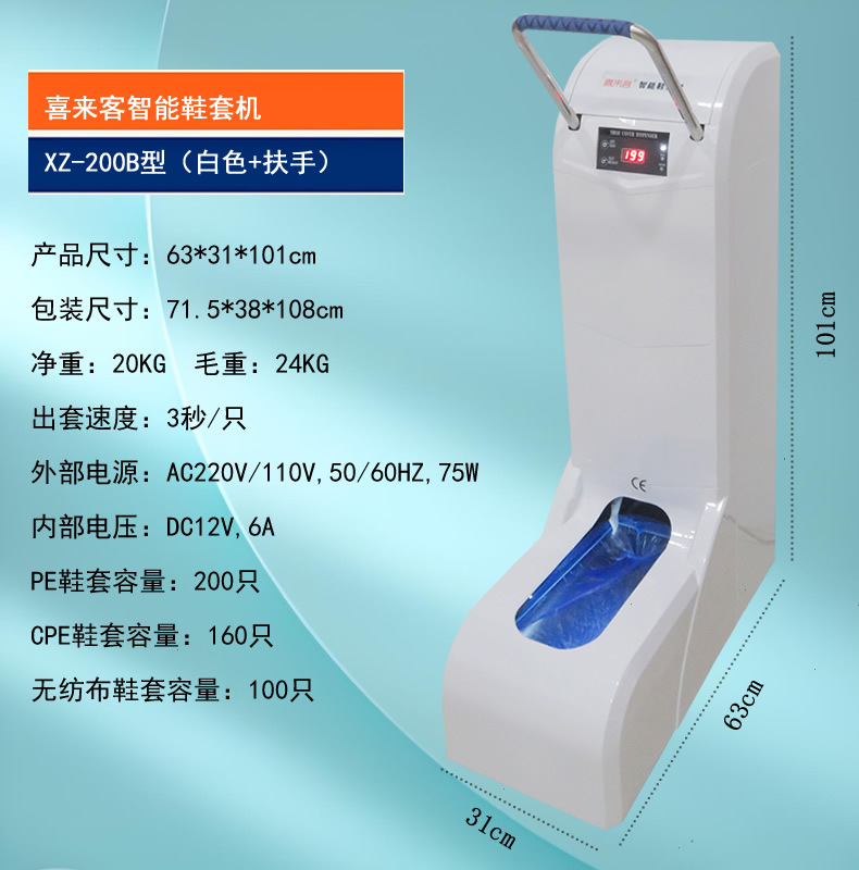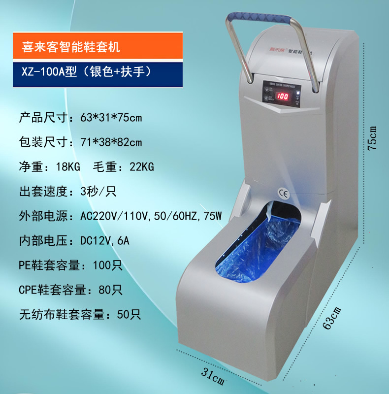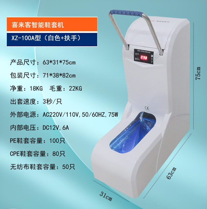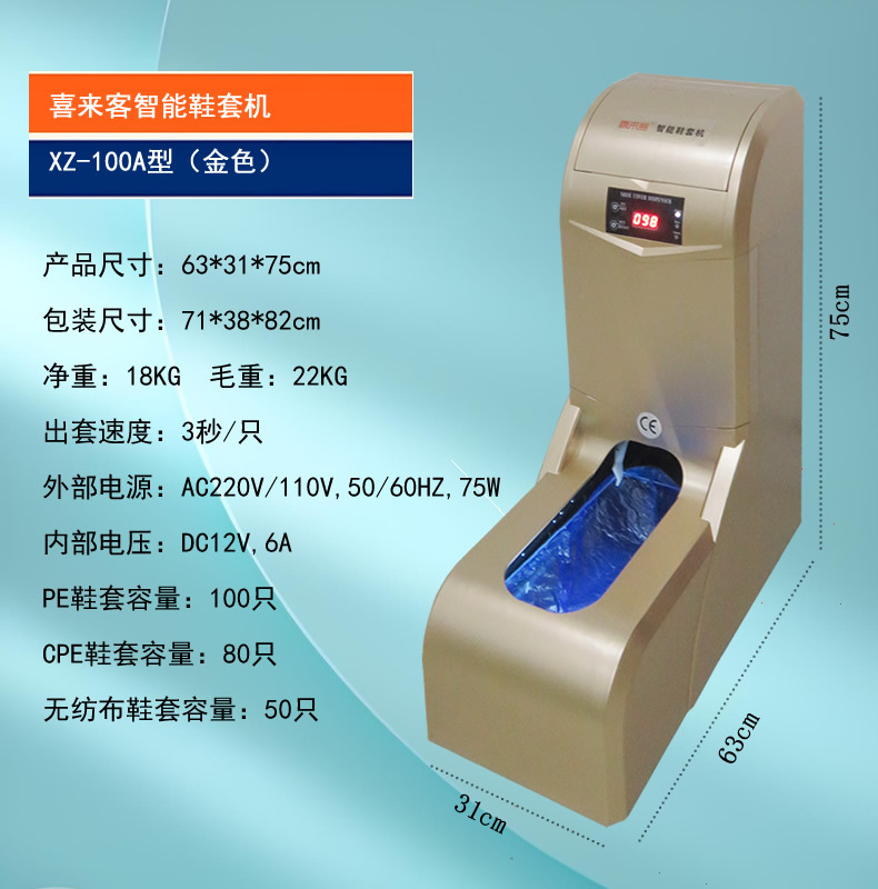 7.微电脑操作系统,操作简单,性能稳定。机器内主要由微电脑控制的线路板、显示板、鞋套识别控制板、电机、红外线开关等组成,机器自动工作。无需人手帮助。