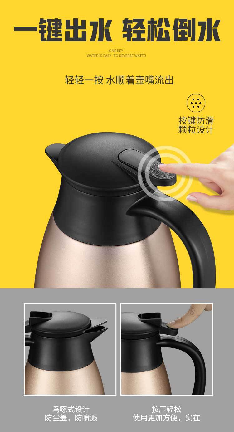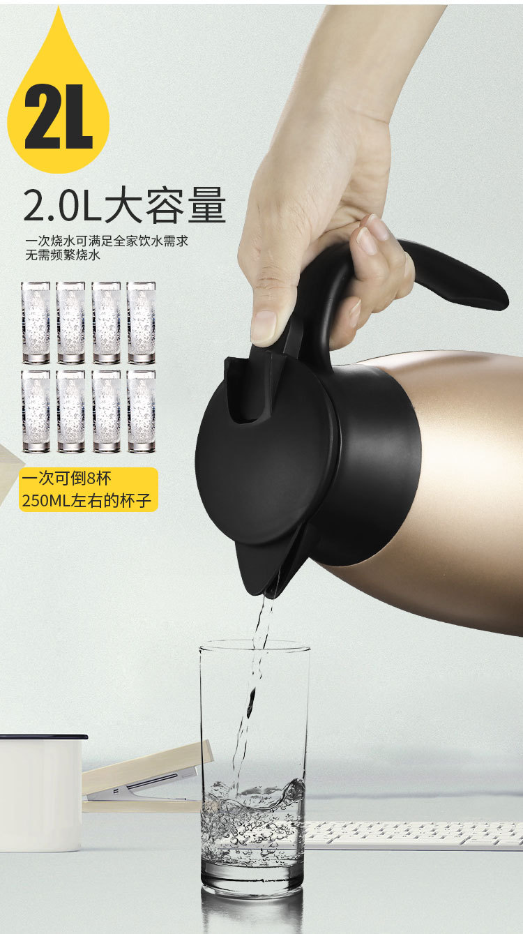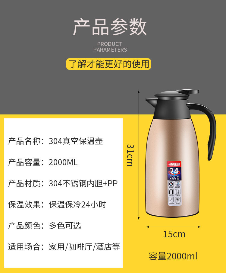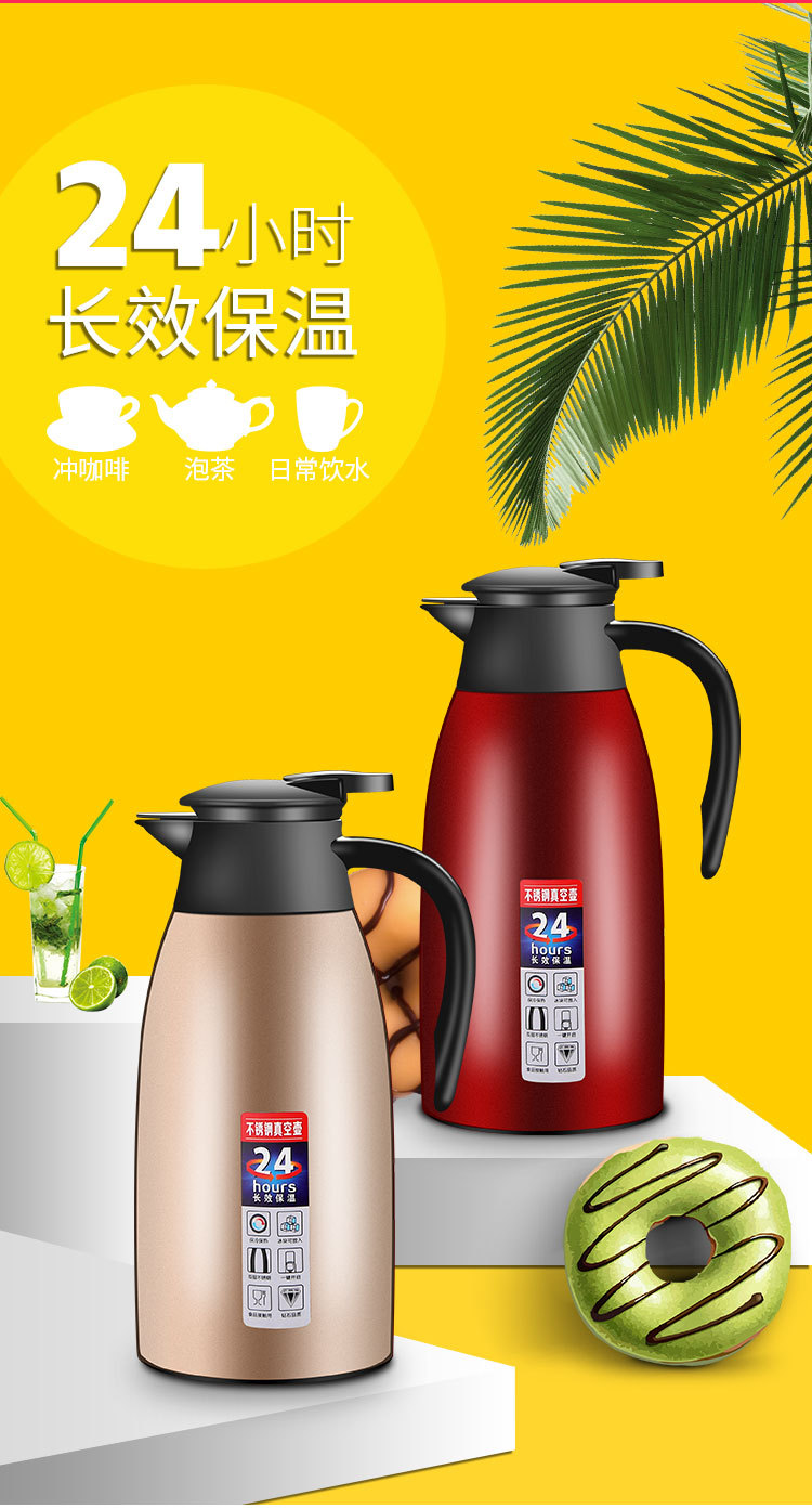 선물 상자 304 스테인레스 스틸 환영 커피 포트 2L 온수 병 가정용 대용량 진공 단열 냄비