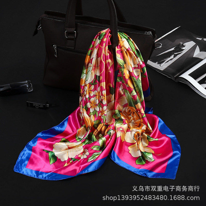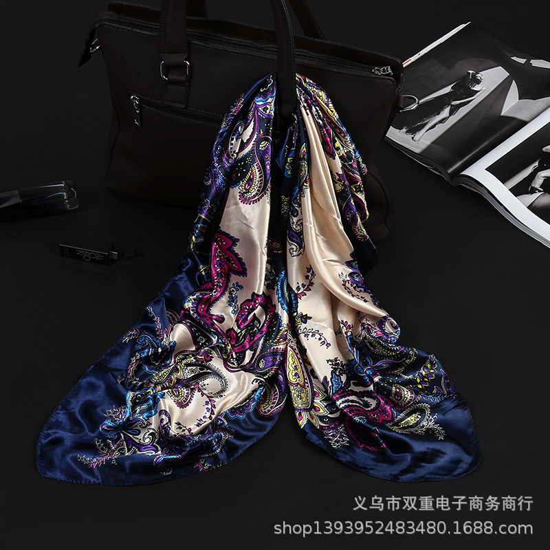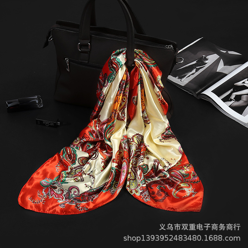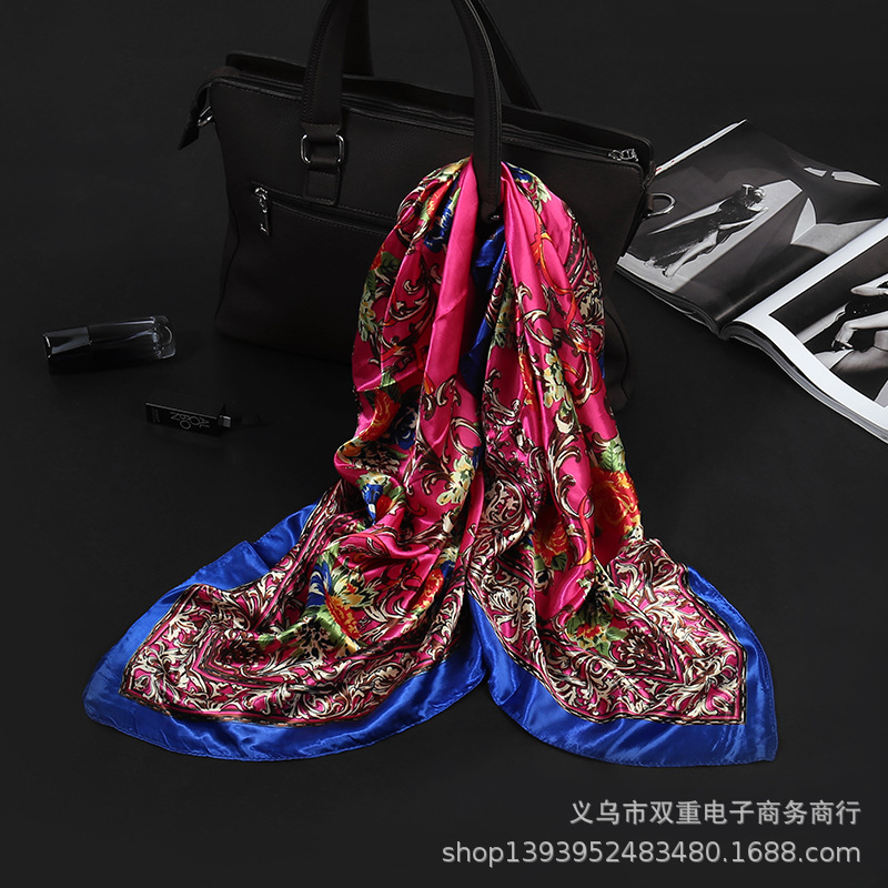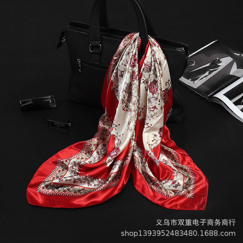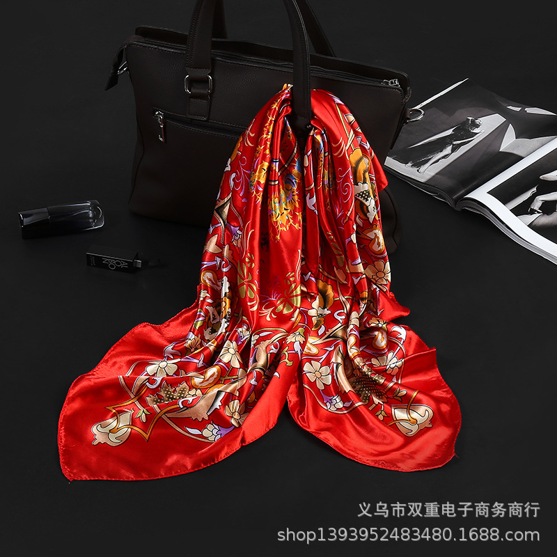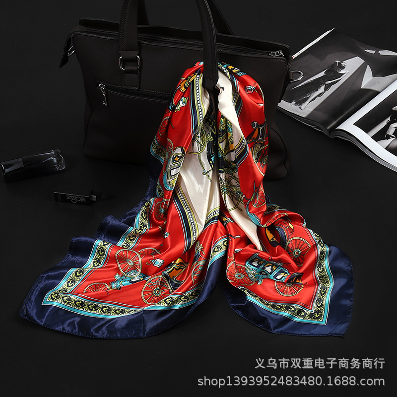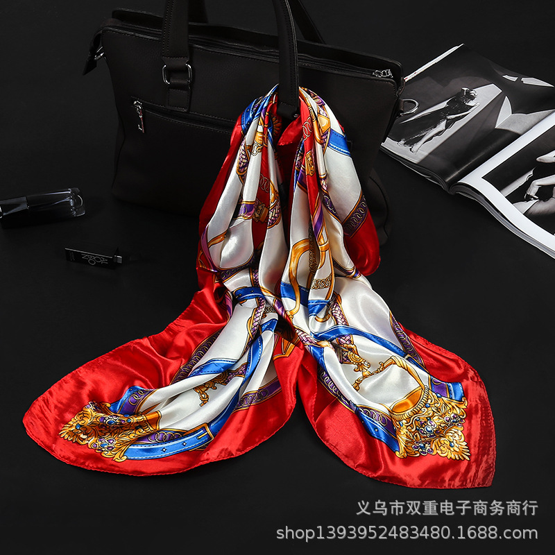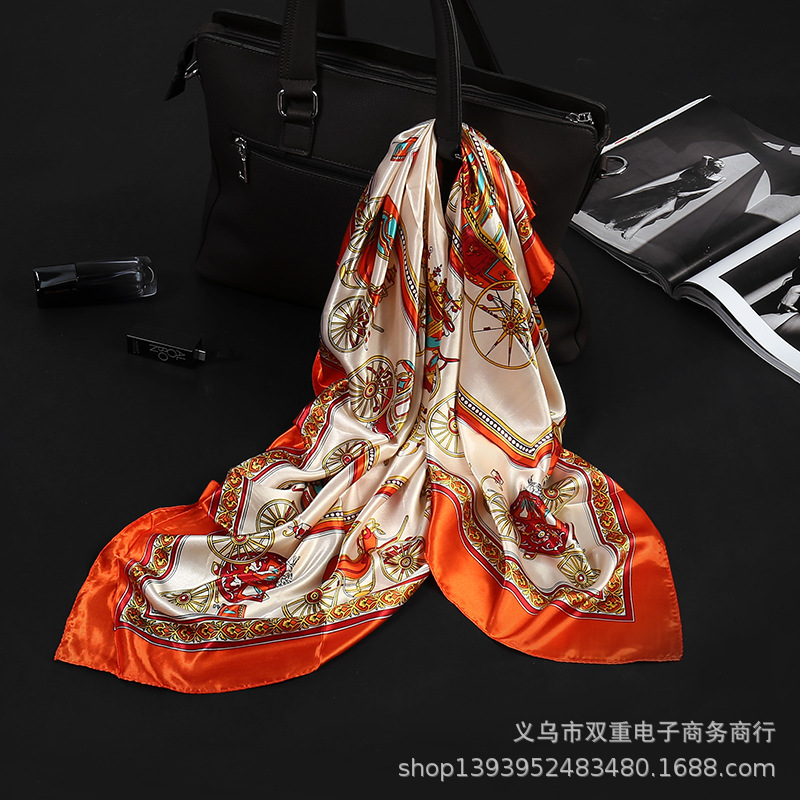2023 새로운 모조 실크 스카프 재고 우송료 90cm 새틴 새틴 큰 사각형 스카프 이우 스카프 도매스토어 가기