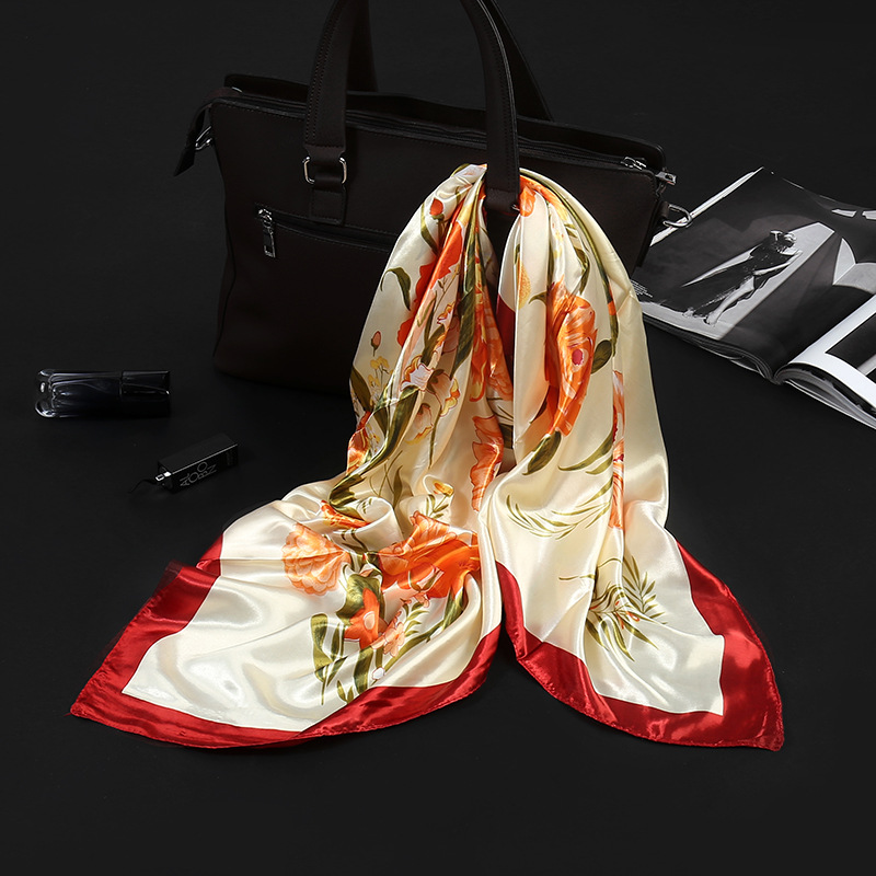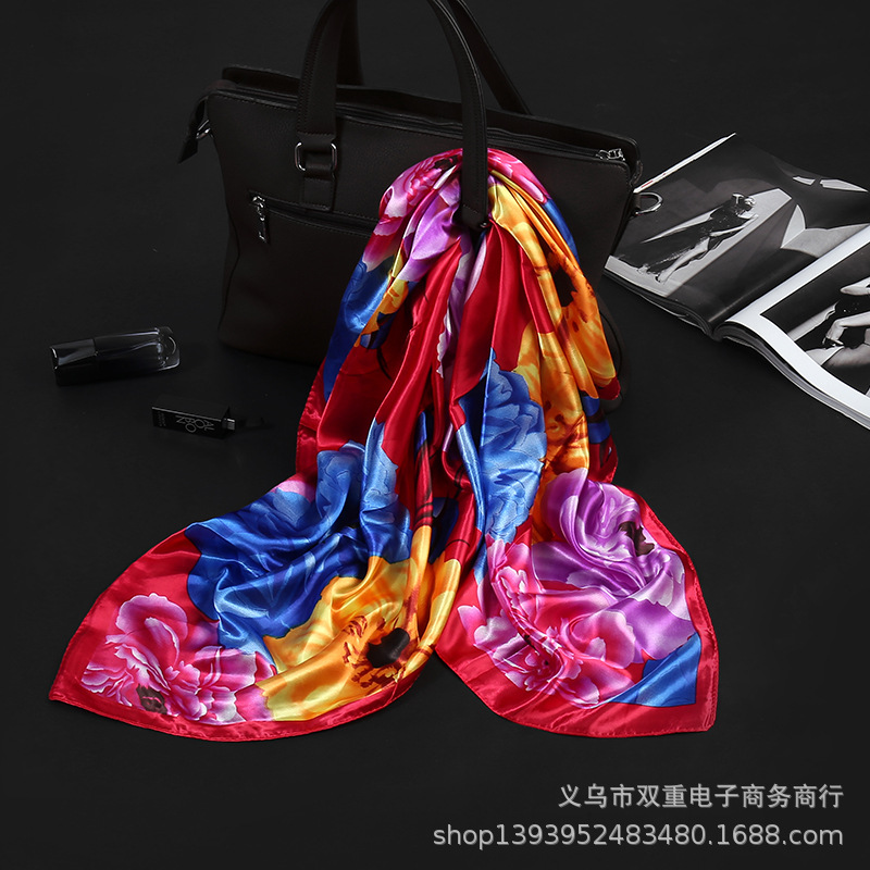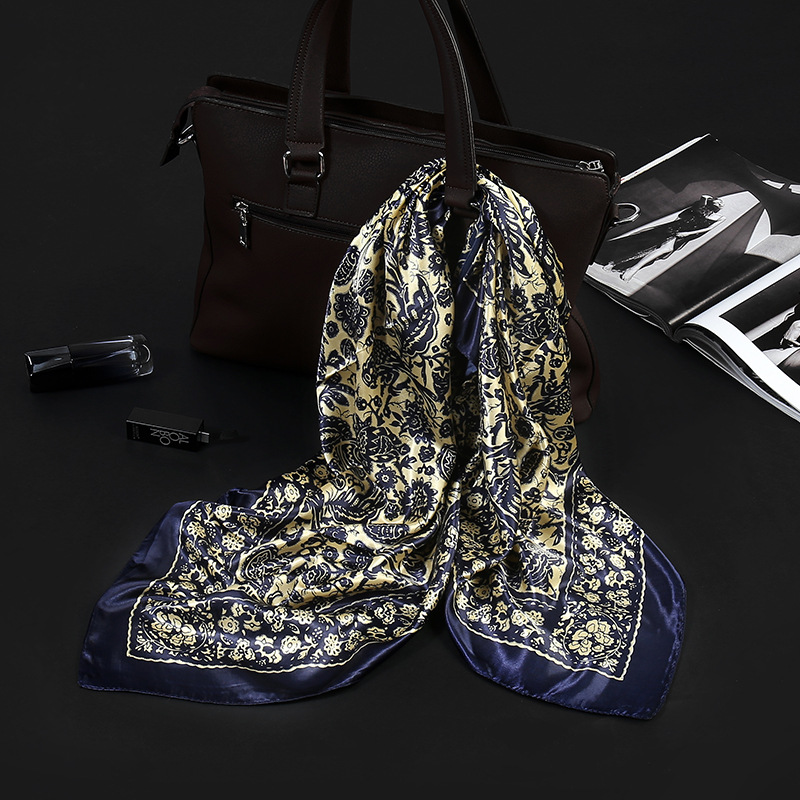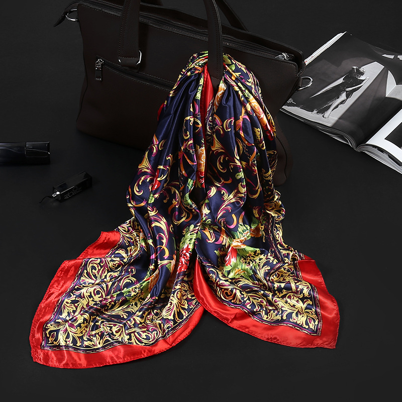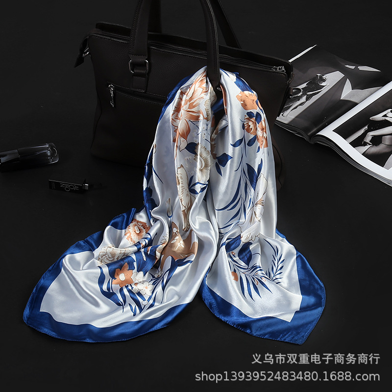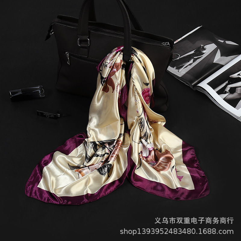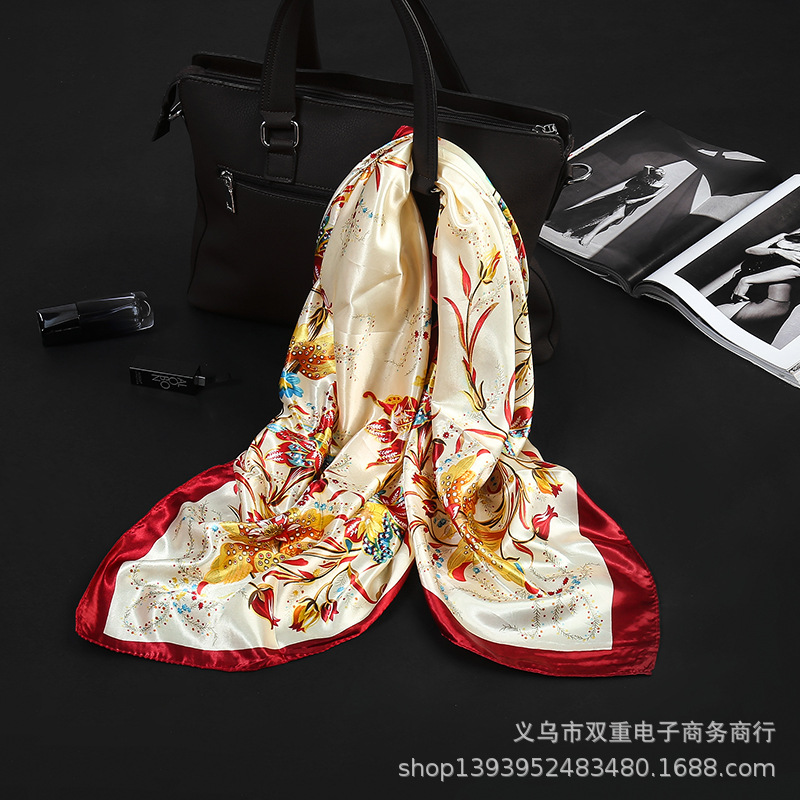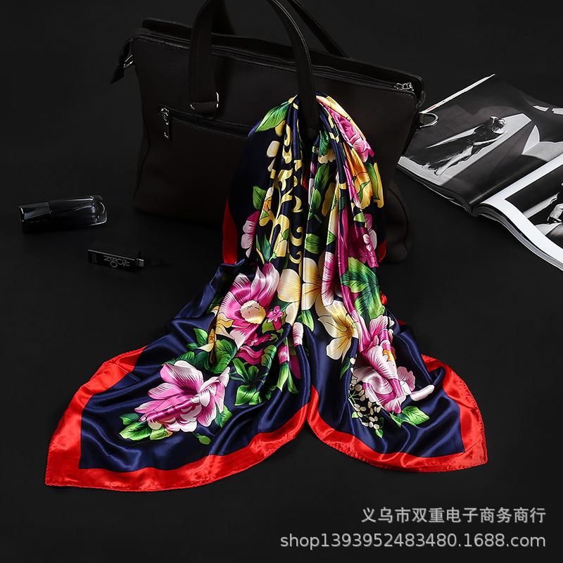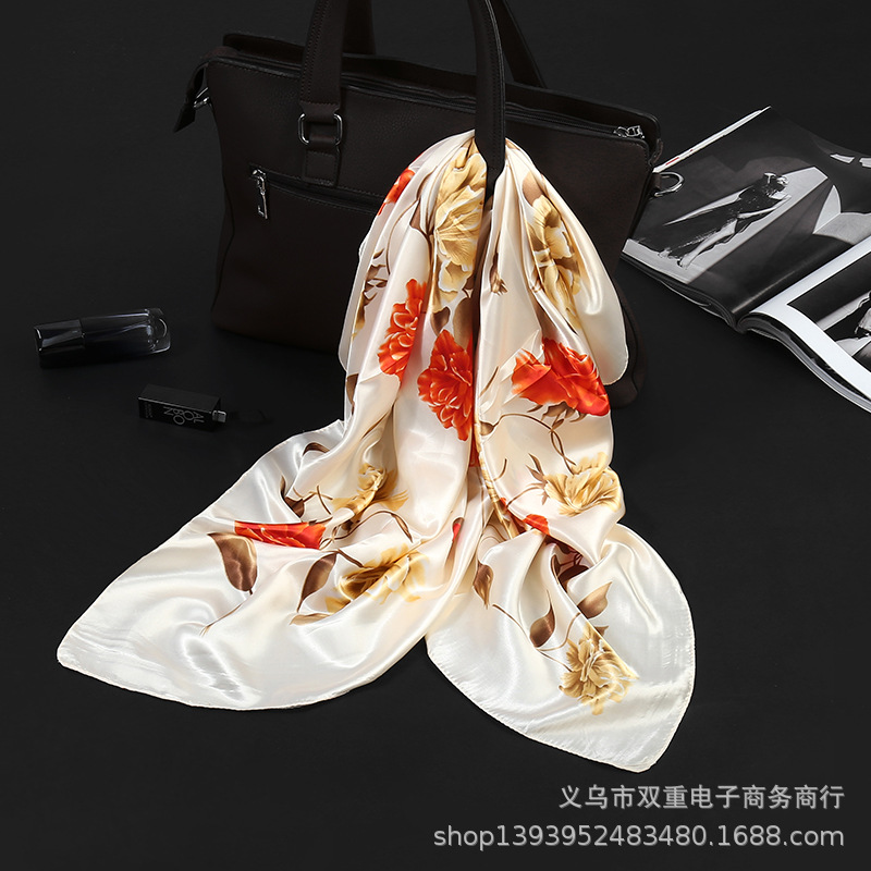 2023 새로운 모조 실크 스카프 재고 우송료 90cm 새틴 새틴 큰 사각형 스카프 이우 스카프 도매스토어 가기