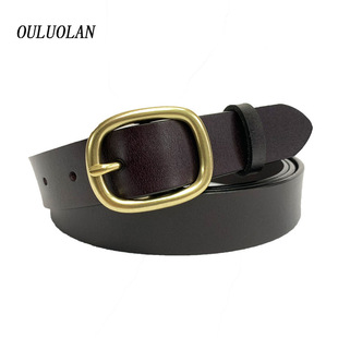 韩版女真皮皮带复古椭圆铜扣牛皮宽腰带简约百搭裤腰带厂家直销