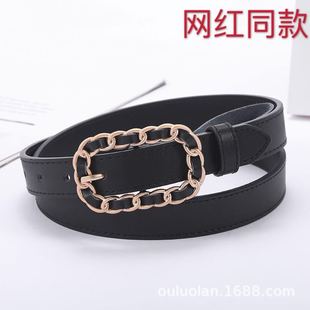 皮带女士真皮牛皮腰带ins风简约百搭编织真皮装饰配裙子小香风
