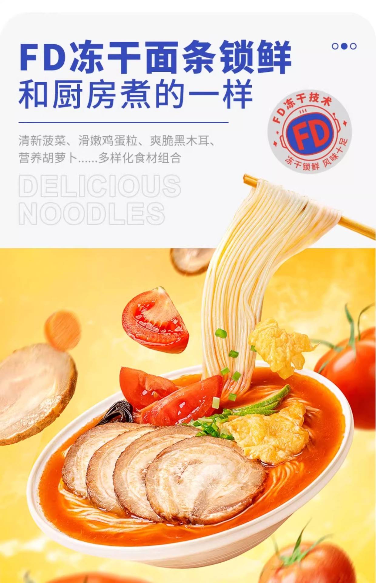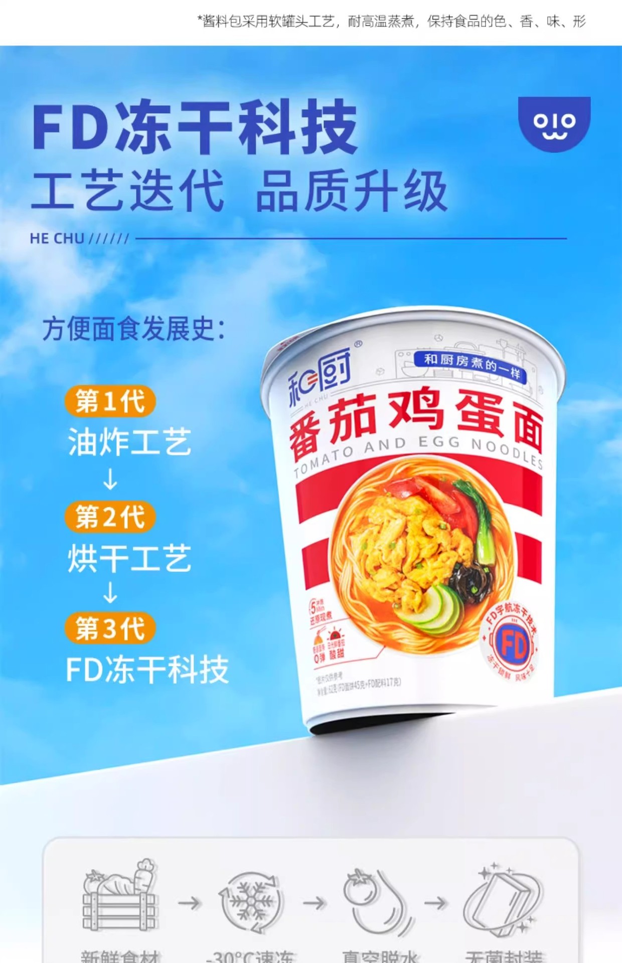 헤큐 즉석 라면 무지방 인스턴트 라면 한박스 6컵 토마토 계란면 동결건조 영양 풍부한 간편식스토어 가기