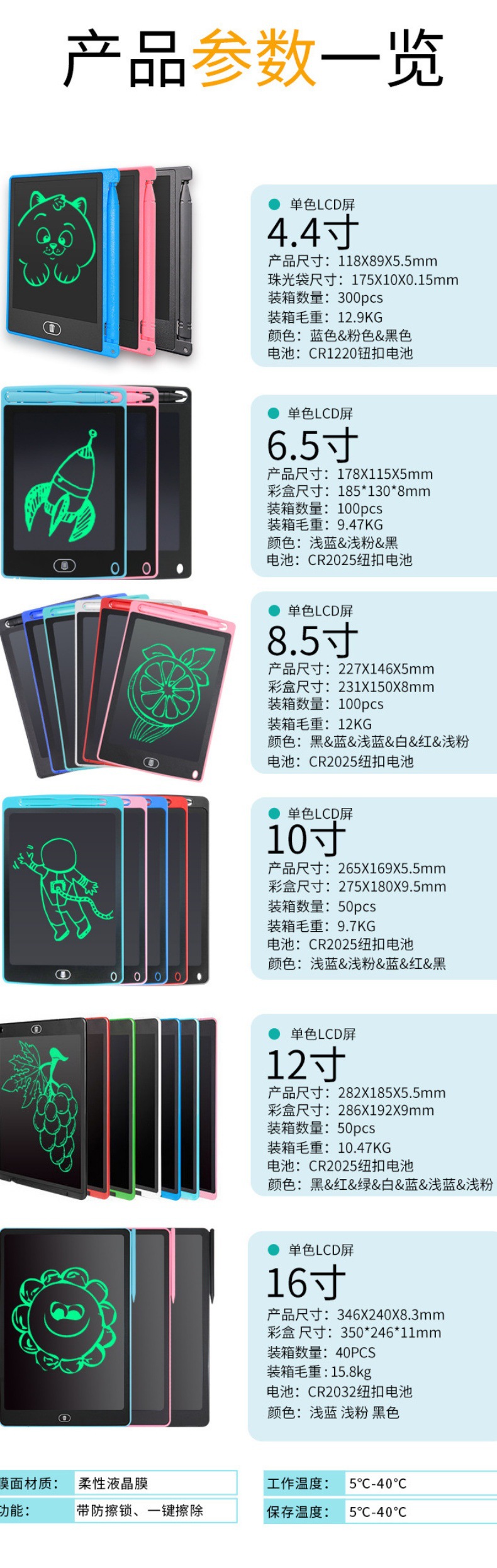 4.4 인치-16 인치 필기 보드 전자 손으로 그린 보드 그림 낙서 LCD 드로잉 보드 지울 수있는 LCD 필기 보드스토어 가기