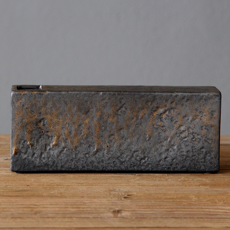 4、粗陶产品经过特殊工艺窑变1300°高温烧制,产品表面会留下焰火烧制的流动痕迹和高温爆点,表面的不均匀并非瑕疵,这是粗陶窑变的特色。