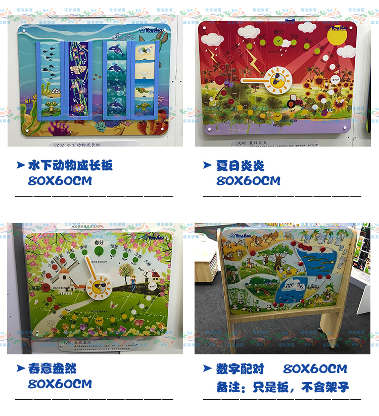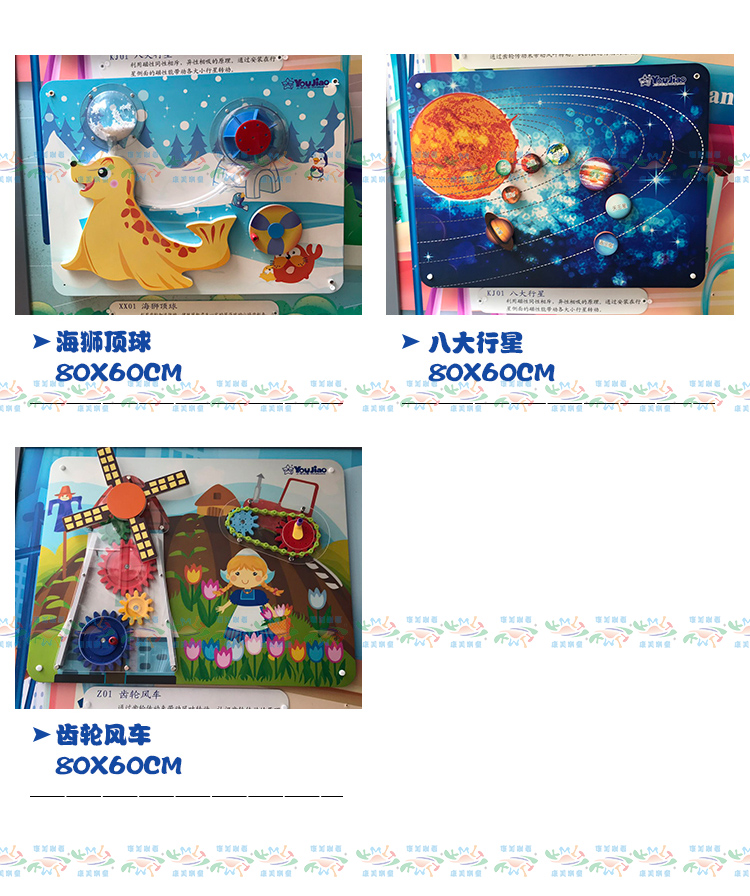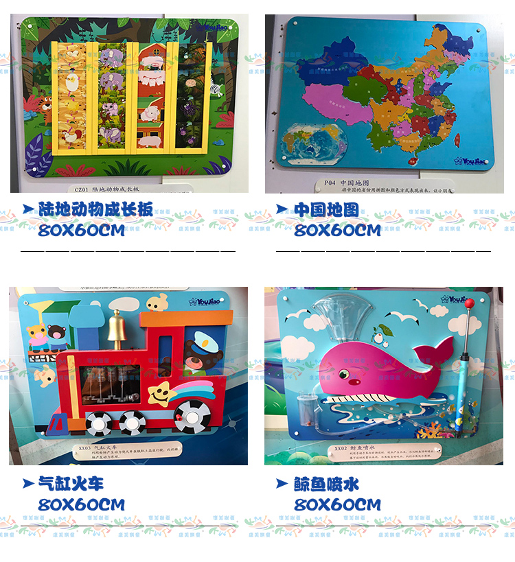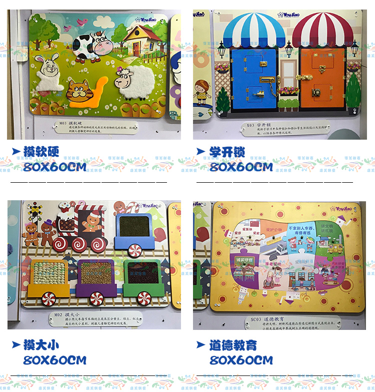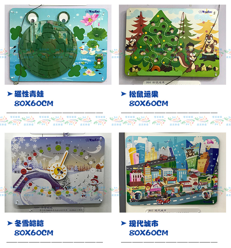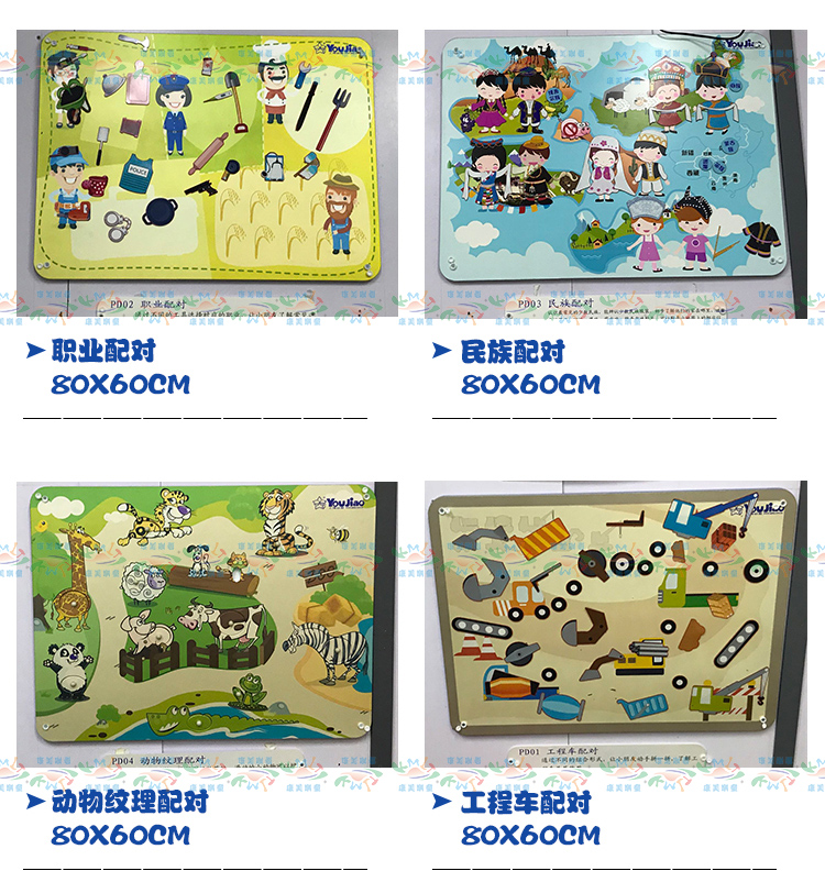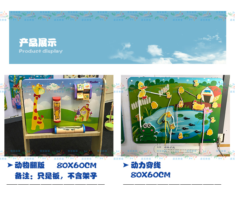 • 颜色分类: 火车滑珠 数字配对 水力火力发电 职业配对 环保小卫士 小小气象家 学开锁 学按扭 风力太阳能发电 喇叭鸣声 老鼠转盘 中国地图 传统声乐 贴脸谱 贴器官 贴菜谱 小鸡拨球 摸材质 摸软硬 我是谁 动物翻版(不含支架) 动物嵌图 贴蔬菜 学穿衣