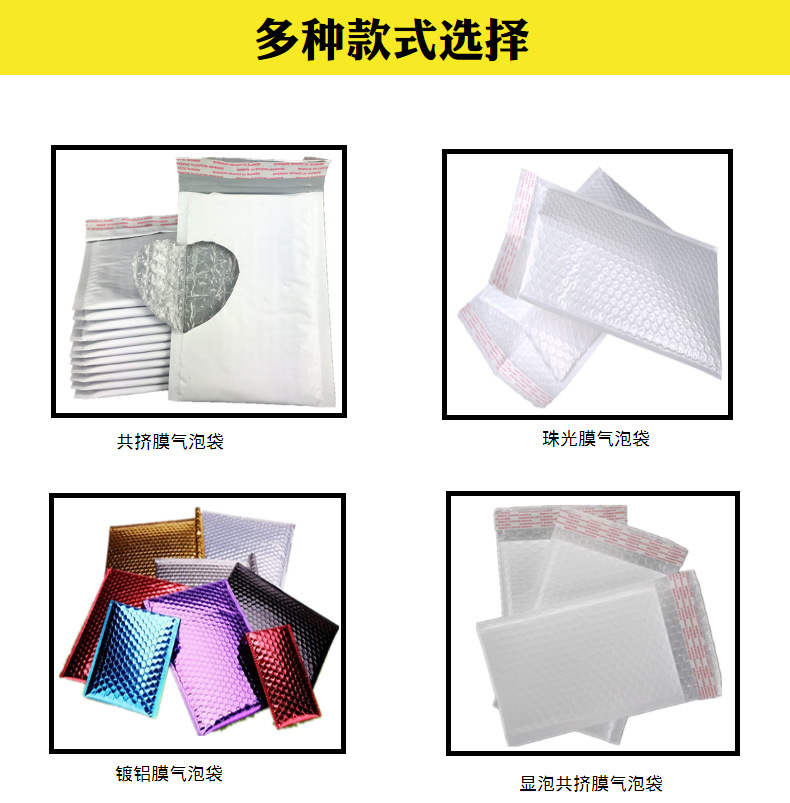 牛皮纸气泡袋  灰白共挤膜气泡袋  珠光膜气泡袋  彩色共挤膜气泡袋  镀铝膜气泡袋
