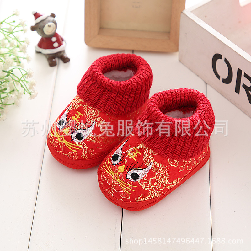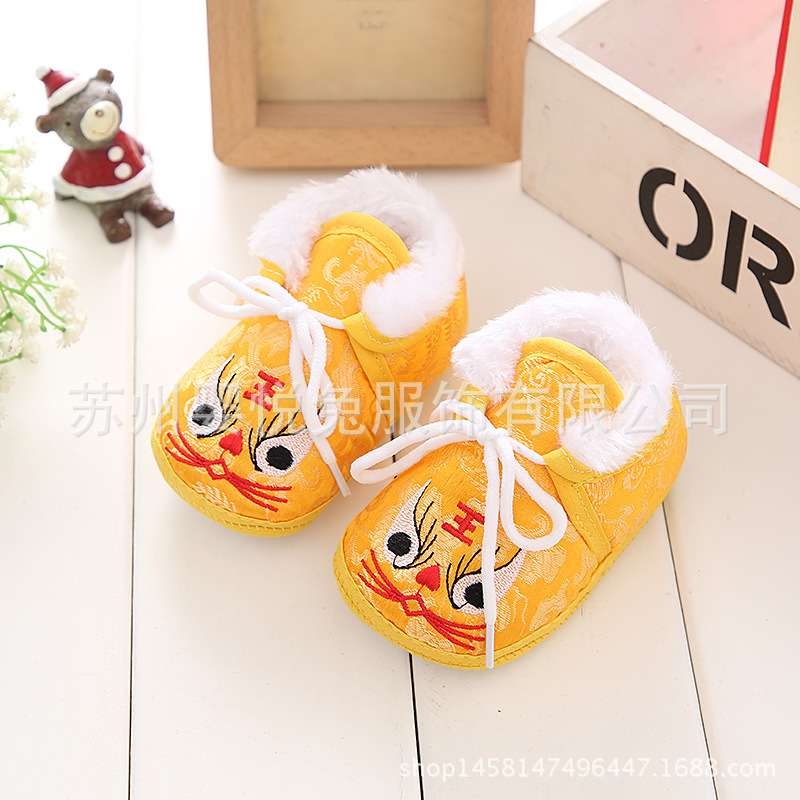 공장 직송 봄, 가을, 겨울용 두꺼운 면 소재 따뜻한 호랑이 머리 신발, 벨벳 자수 캐주얼 유아용 만화 신발, 귀여운 디자인스토어 가기