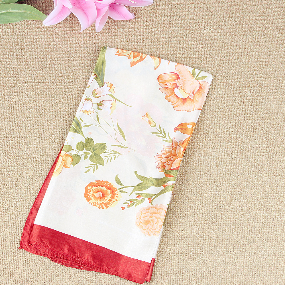 2019 새로운 폭발 모란 뿔 꽃 새틴 스카프 대형 사각형 비치 타월 이우 공장 스카프 직선 배치