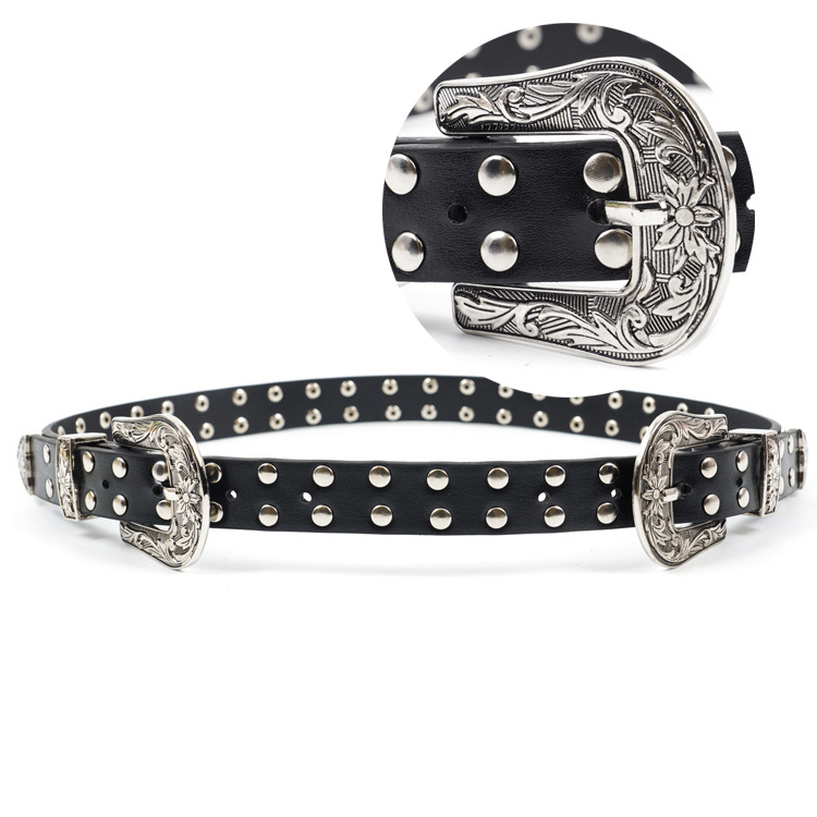 유럽과 미국 레트로 조각 더블 버클 얇은 벨트 허리 씰 여성의 유행 모든 일치 핀 버클 벨트 청바지 스커트스토어 가기