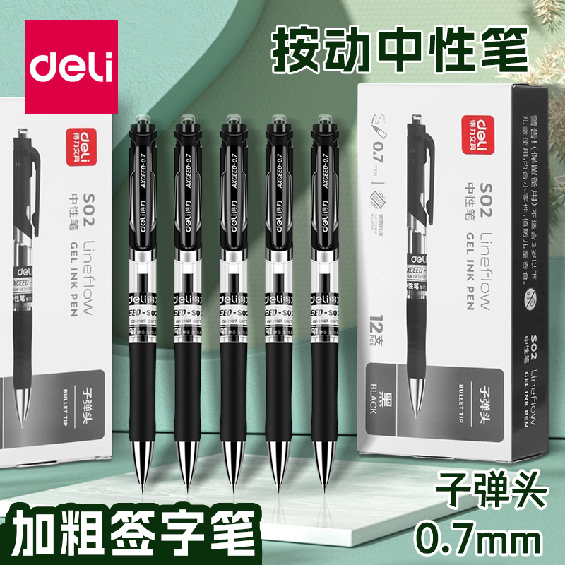 델리 S02 프레스 젤 펜 0.7 블랙 오피스 워터 펜 사무실 대담한 사인 펜 프레스 펜