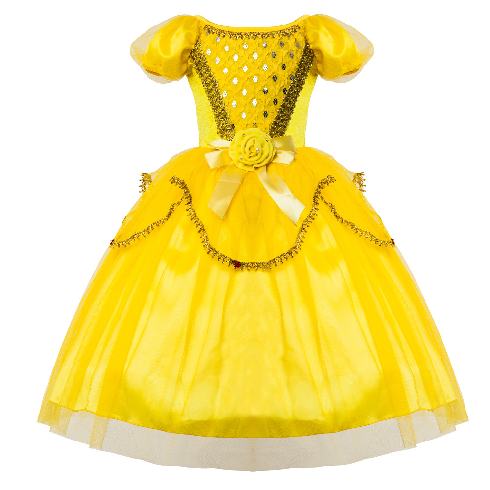 美女与野兽真人版贝儿公主女童春季连衣裙新cos公主裙