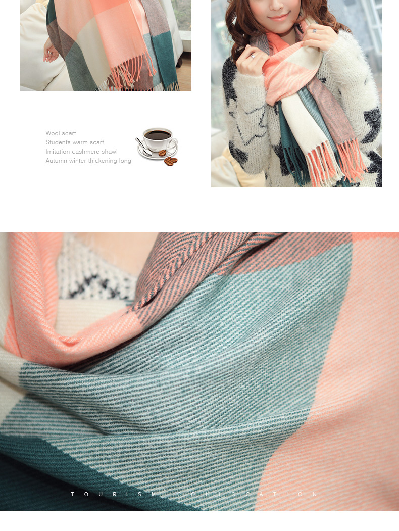한국식 격자 무늬 가을 겨울 남성과 여성을 위한 모조 캐시미어 스카프 두꺼운 긴 목도리 이중 목적 학생 따뜻한 스카프 목도리스토어 가기