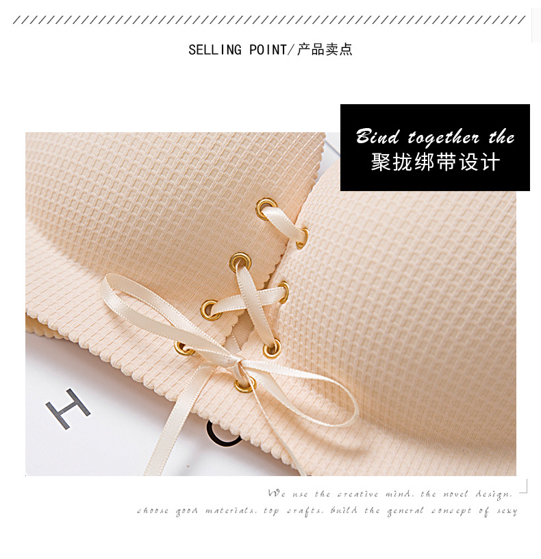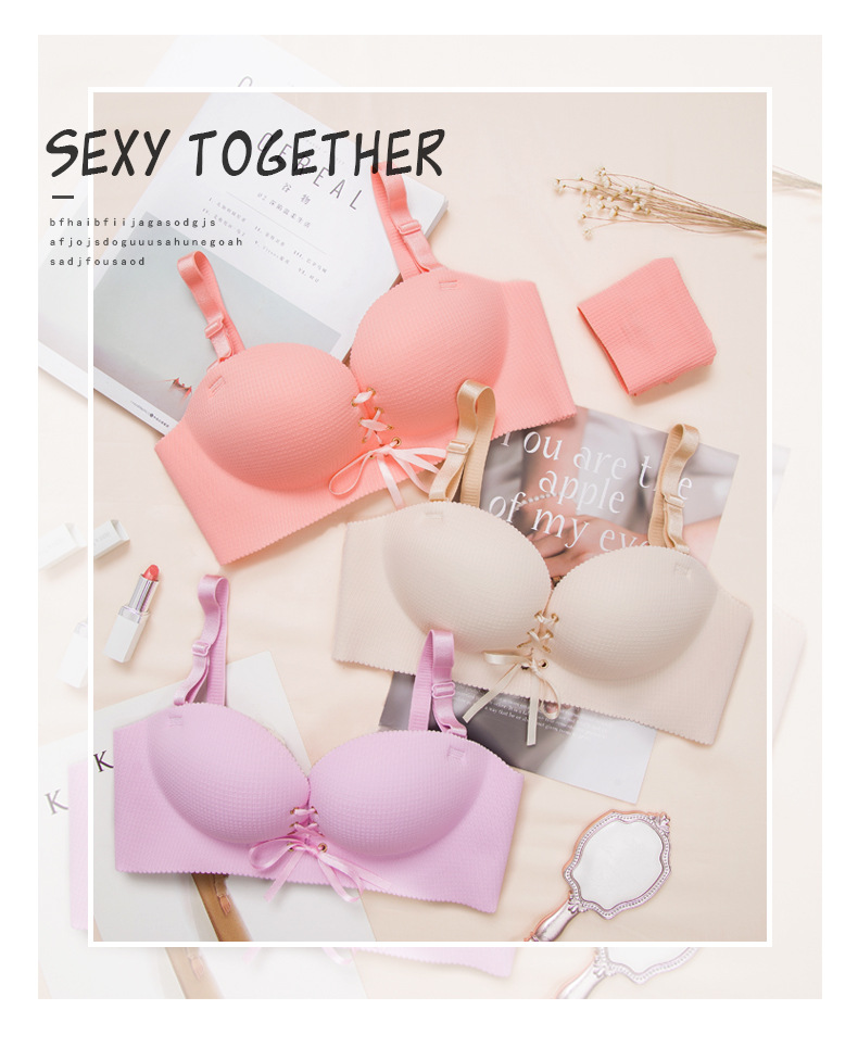 블랙 스노우 369 원피스 심플 원피스 체크 무늬 편안한 속옷 여성용 무테 작은 가슴 졸라매는 끈 푸시 업 브라