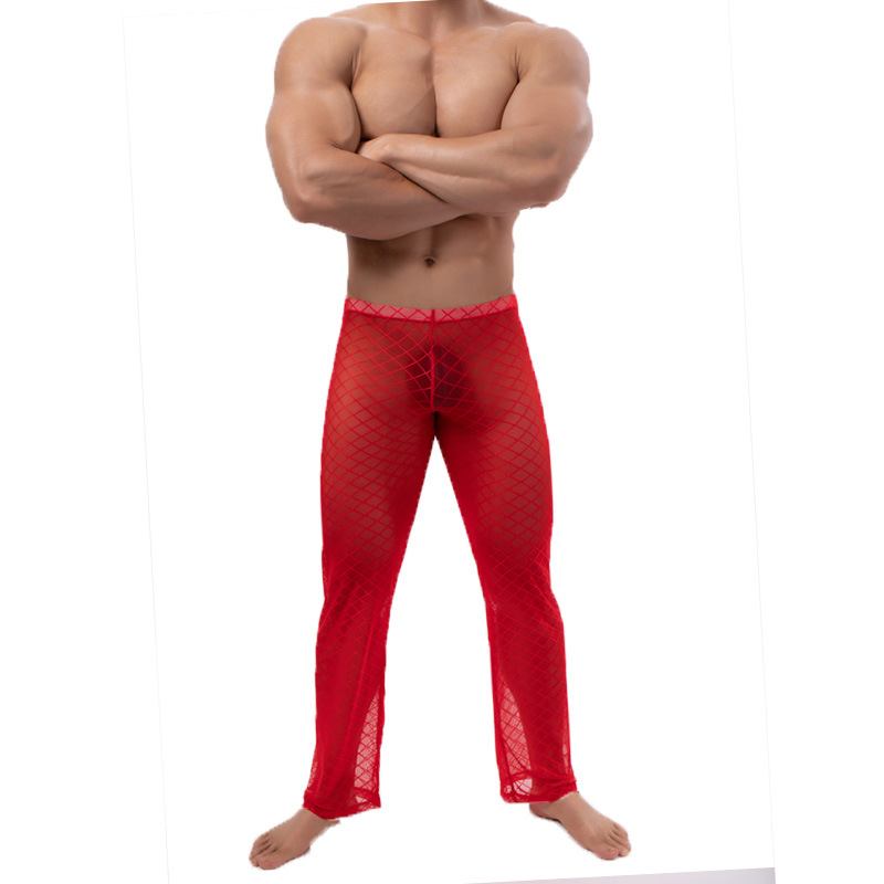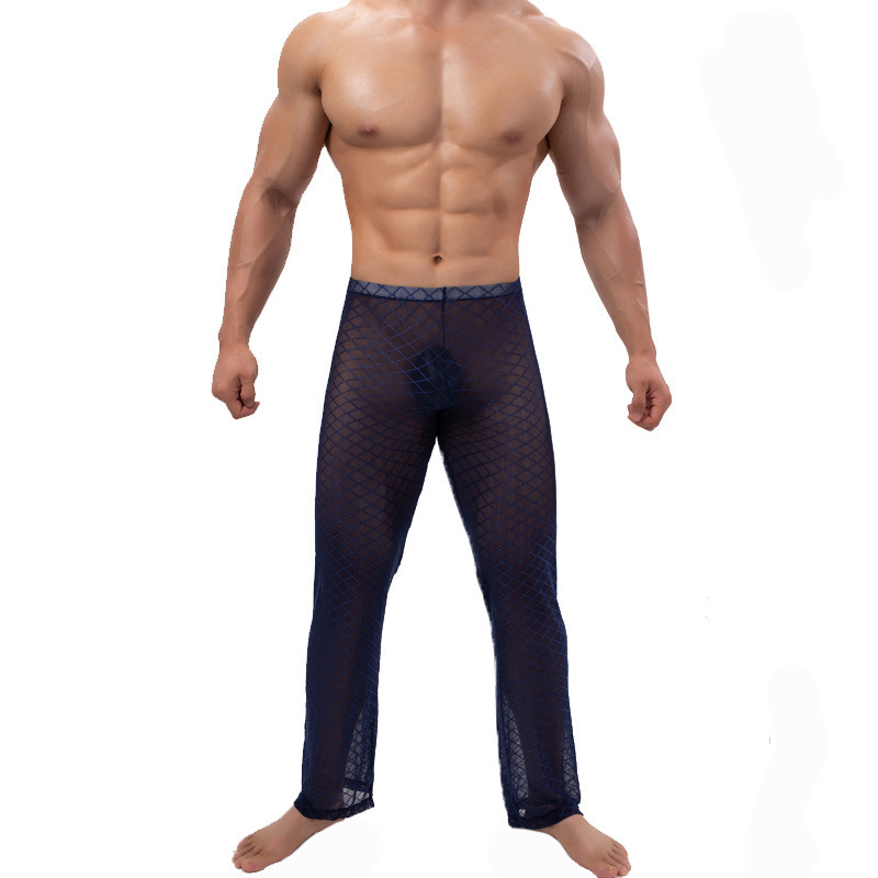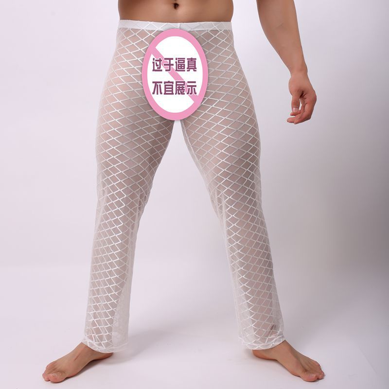 남자 섹시한 메쉬 캐주얼 바지 홈 바지 낮은 허리 섹시한 투명 다이아몬드 메쉬 바지 B- 04