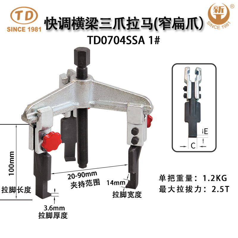 Tianda Xingong 베어링 풀러 제거 상단 풀러 빠른 조정 빔 3 클로 풀러 (좁은 플랫 클로) TD0704SSA스토어 가기