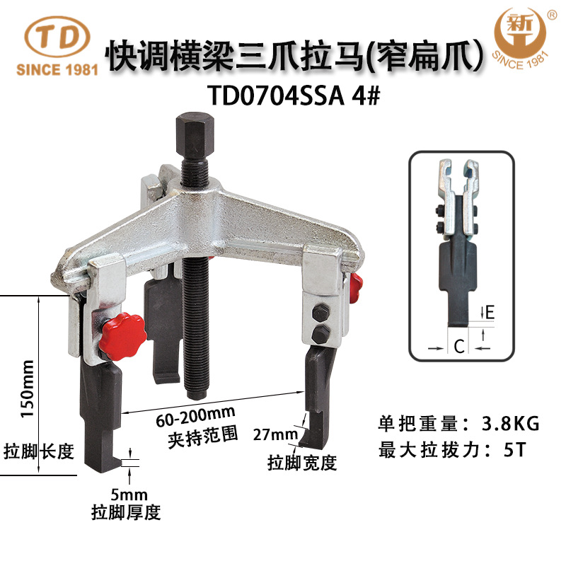 Tianda Xingong 베어링 풀러 제거 상단 풀러 빠른 조정 빔 3 클로 풀러 (좁은 플랫 클로) TD0704SSA