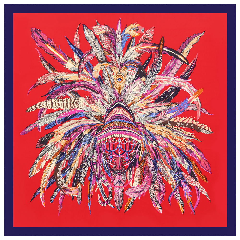 유럽과 미국의 새로운 대외 무역 실크 스카프 능 직물 새틴 여성용 130cm 대형 사각 깃털 크라운 인쇄 숄 스카프