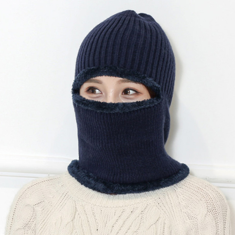 남성용 따뜻한 헤드 기어 오픈 아이 니트 울 모자 한국식 여성용 풀오버 모자 큰 어린이 방한 목 보호 올인원 모자스토어 가기