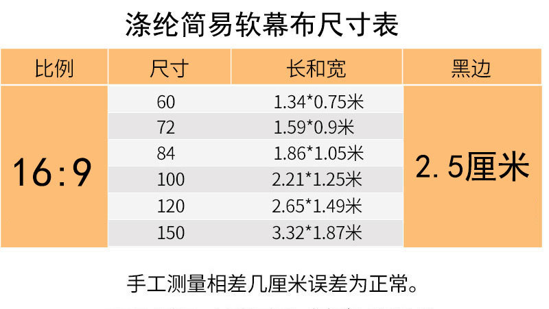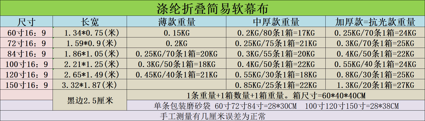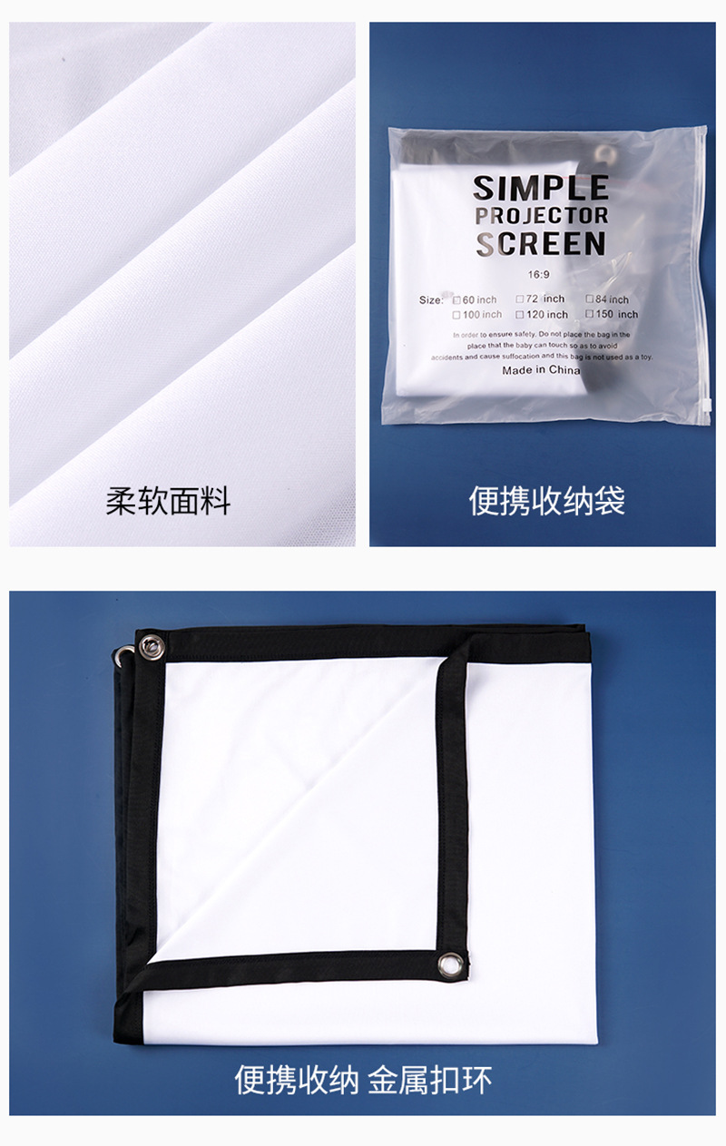 Xinyou 폴리에스테르 단순 접이식 소프트 커튼 100inch 120inch 후크가 있는 야외 휴대용 고화질 프로젝터 스크린