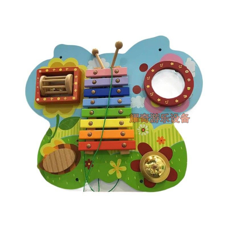 【功能】:蝴蝶姐姐的七彩风琴是一站式幼儿打击乐体验墙面游戏,将四种乐器立体化,变化幼儿玩打击乐的经验,将传统以左右敲击或者低头敲打的动作变成直视前后敲打或者仰头操作的崭新体验,乐器不放在桌上或手上,也能操作并且发出声响,挑战幼儿的经验进而促进幼儿的想象力以及创造力,提升幼儿视觉及听觉能力,并且透过观察手眼的协调动作,进行音乐素养的启蒙教育