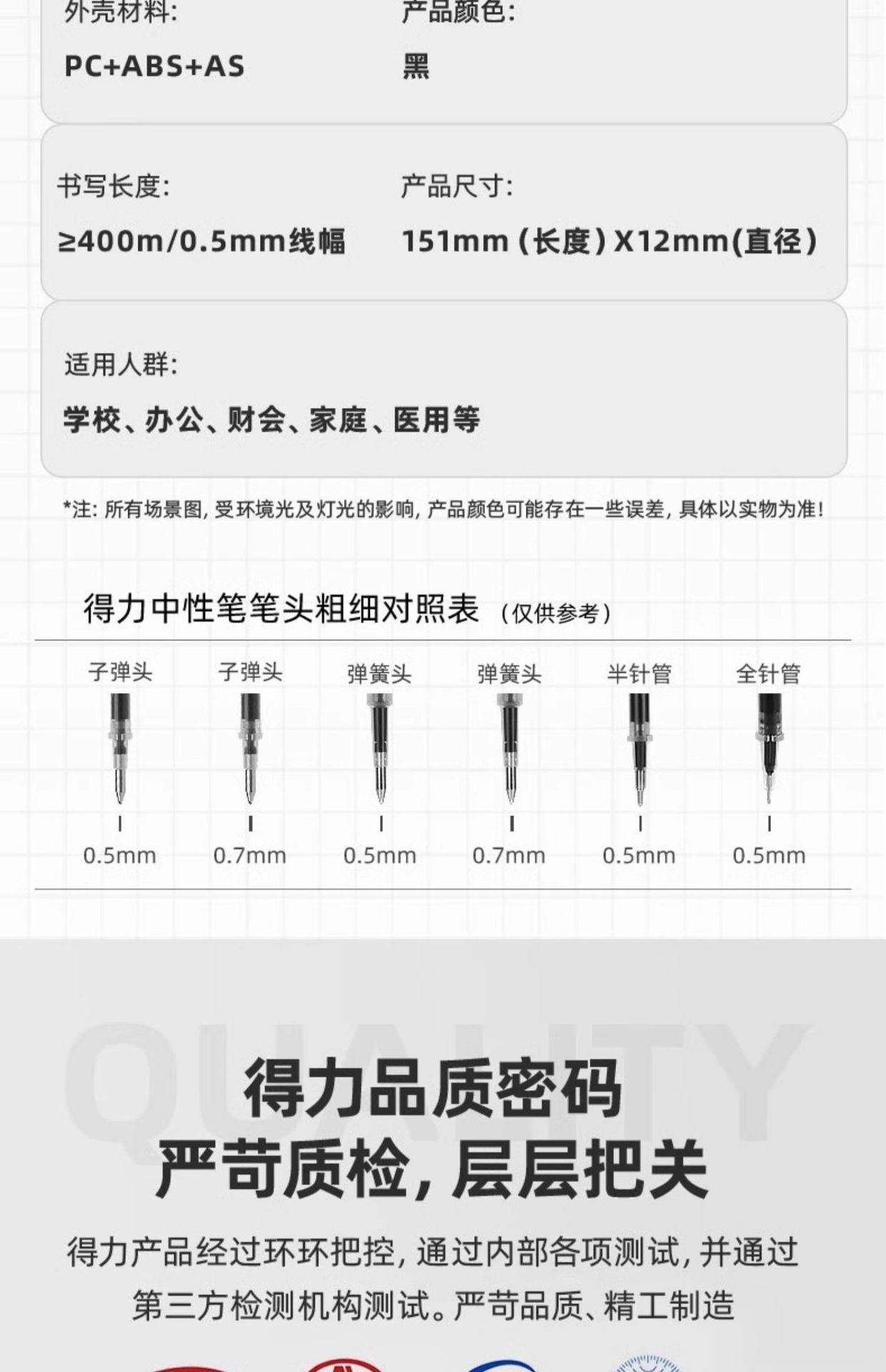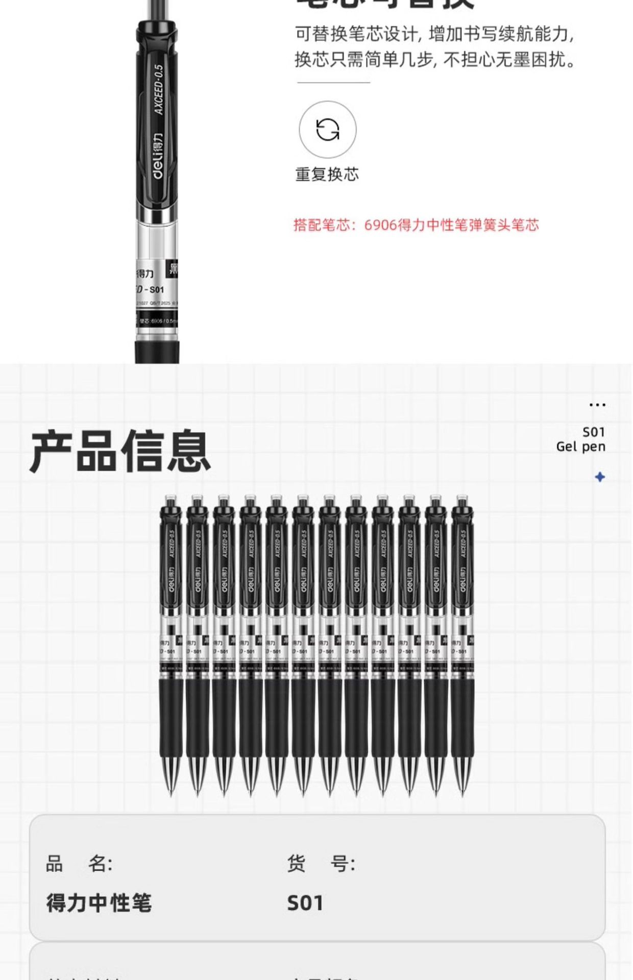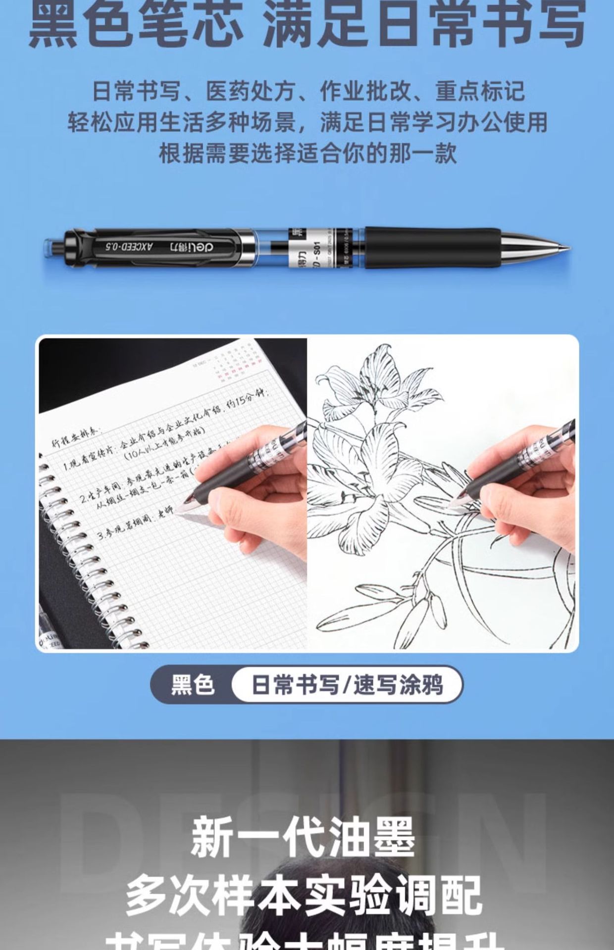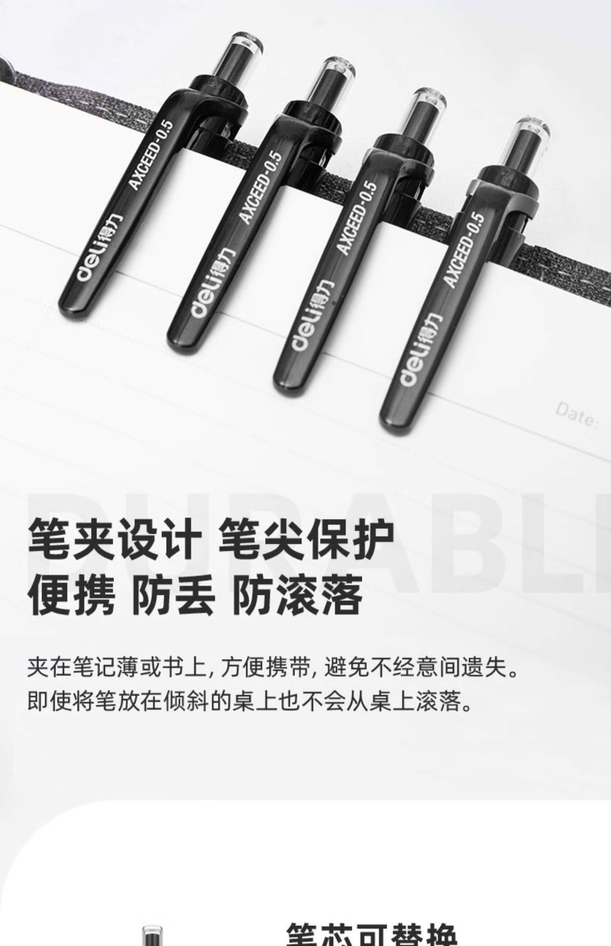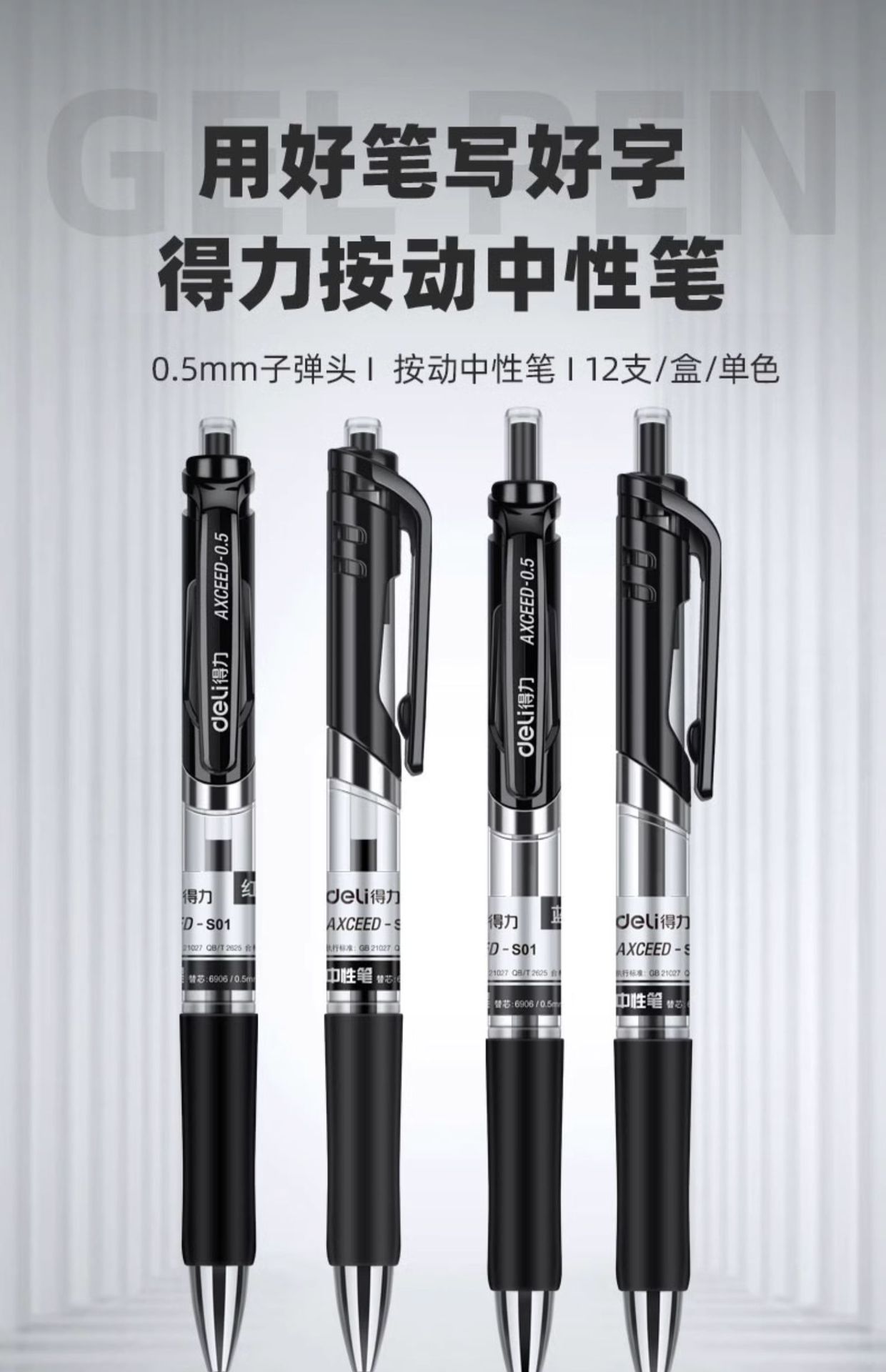 델리 S01/33388 프레스 젤 펜 0.5mm 검정 사인 펜 총알 학생 테스트 프레스 펜