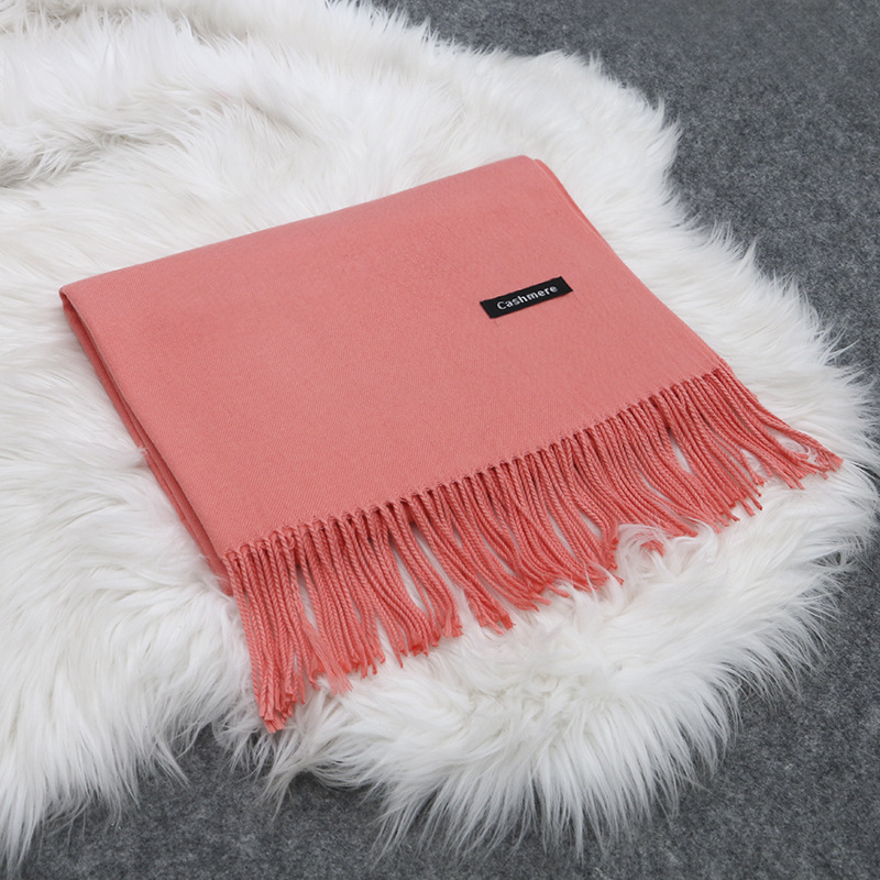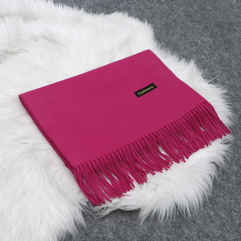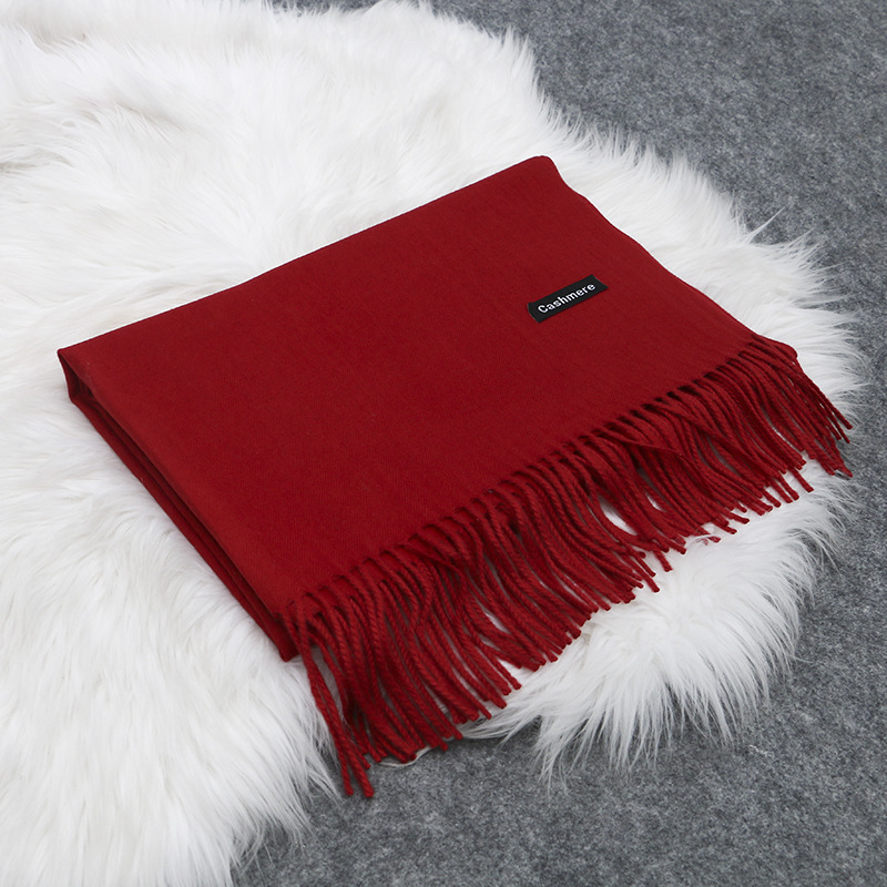 200g 여성용 밝은 빨간색 단색 모조 캐시미어 스카프 한국어 버전 겨울 다목적 두꺼운 목도리 따뜻하고 세련된 스카프