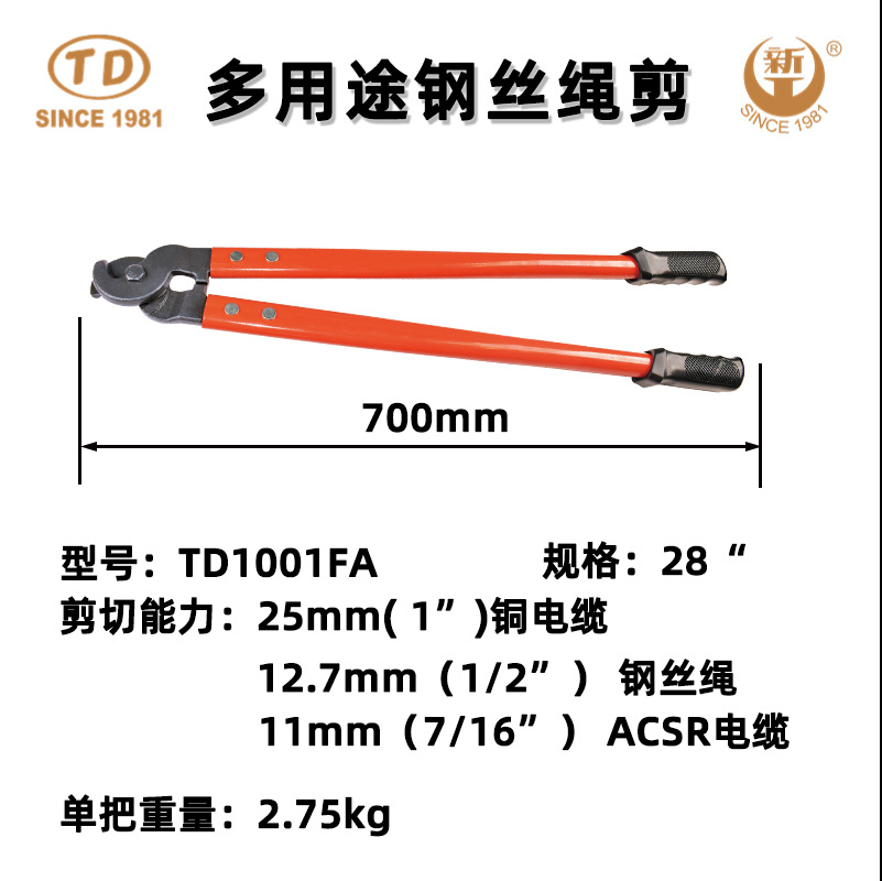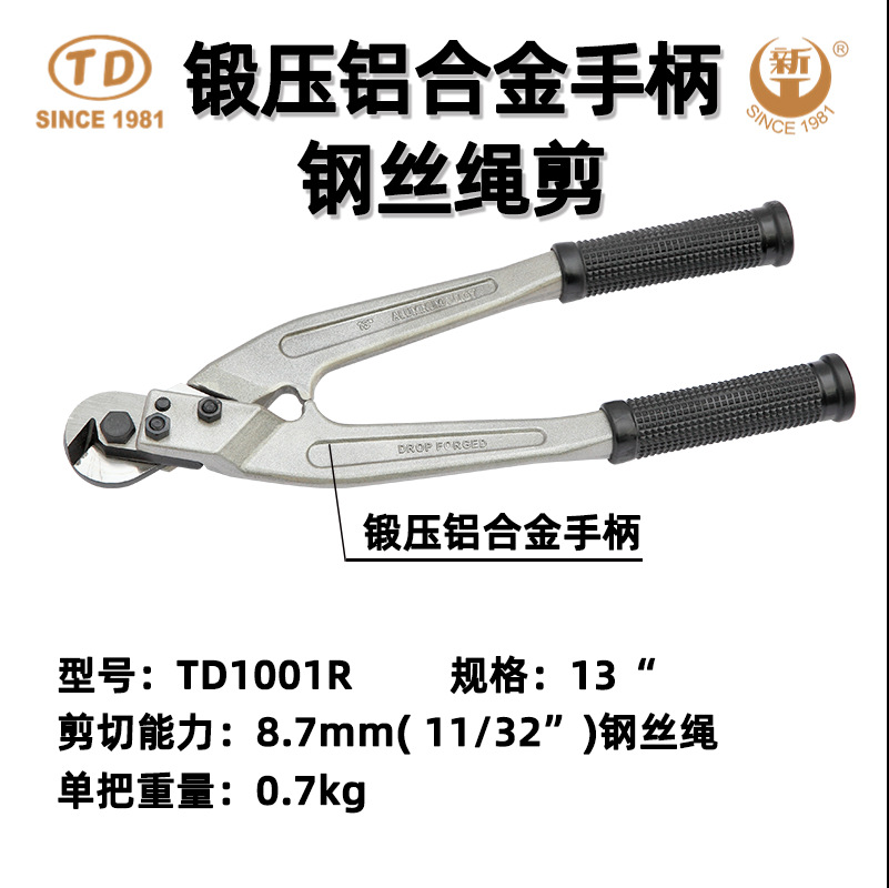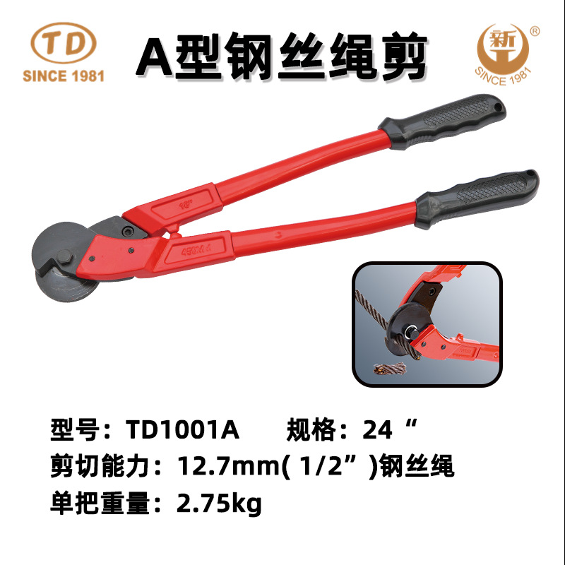Tianda Xingong 다기능 와이어 펜치 와이어 커터 절연 대형 힘 전단 와이어 로프 전단 알루미늄 핸들 와이어 로프 전단
