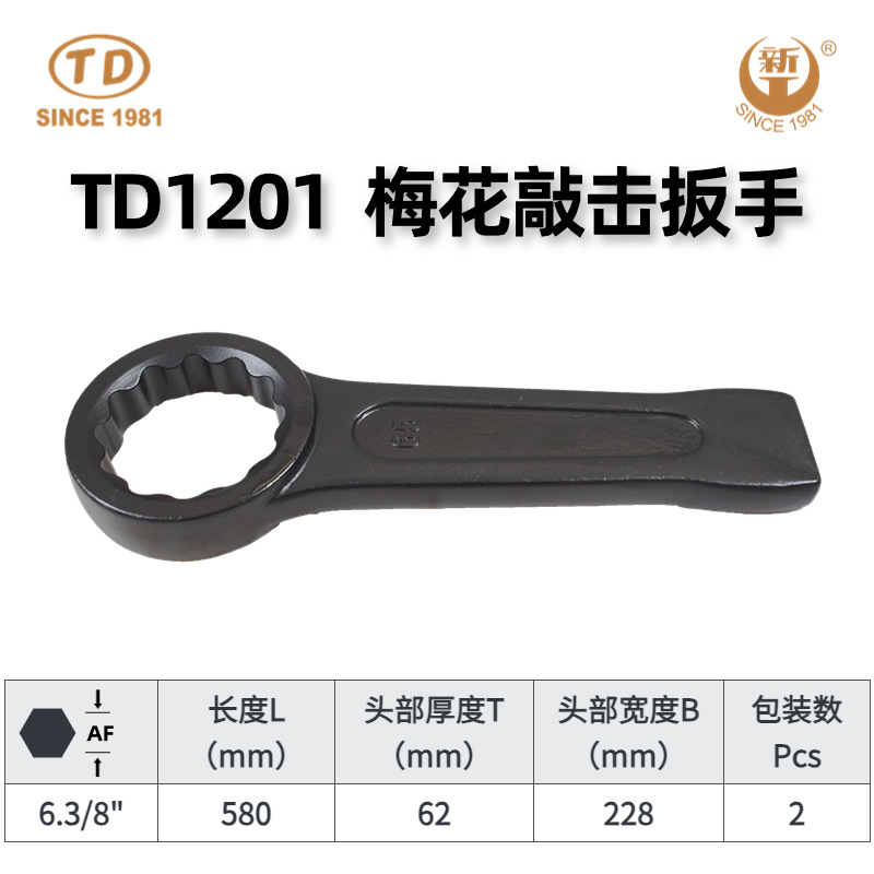티안다 새로운 작업 타악기 렌치 싱글 스트레이트 핸들 렌치 링 타악기 렌치 TD1201 인치