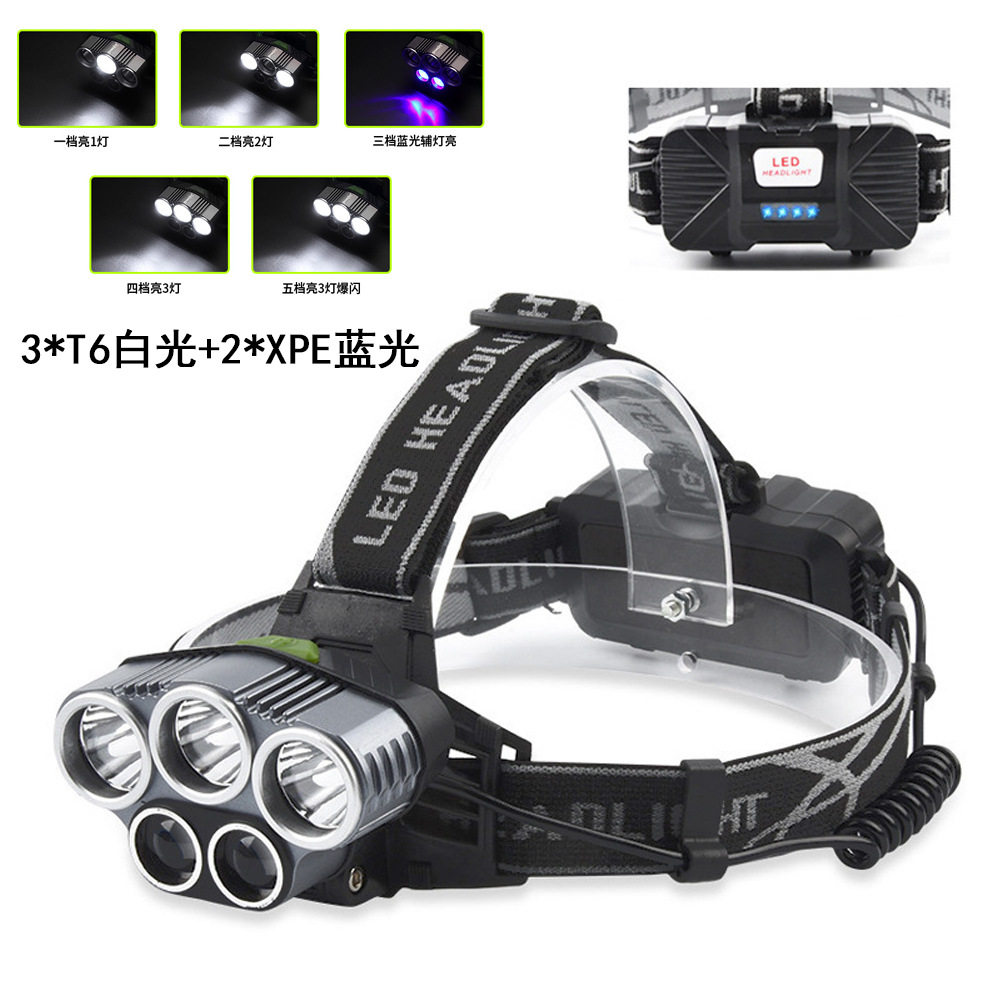 灯珠类型:3*T6白光+2*XPE白光款/3*T6白光+2*XPE蓝光款