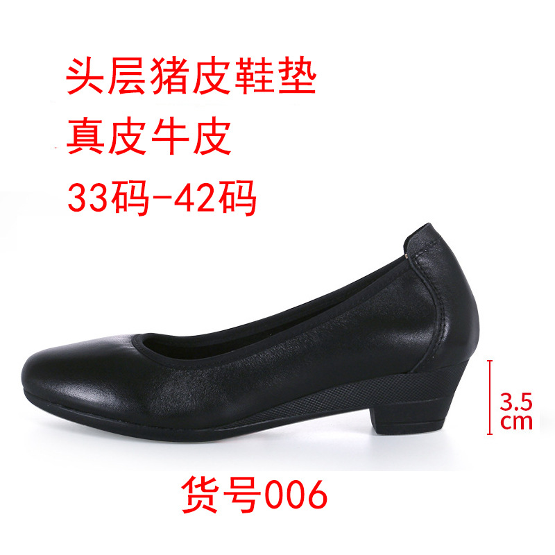 2025 봄 새로운 하이힐 둥근 발가락 두꺼운 뒤꿈치 얕은 입 가죽 신발 작업 신발 대형 작업 전문 단일 신발 여성 도매스토어 가기