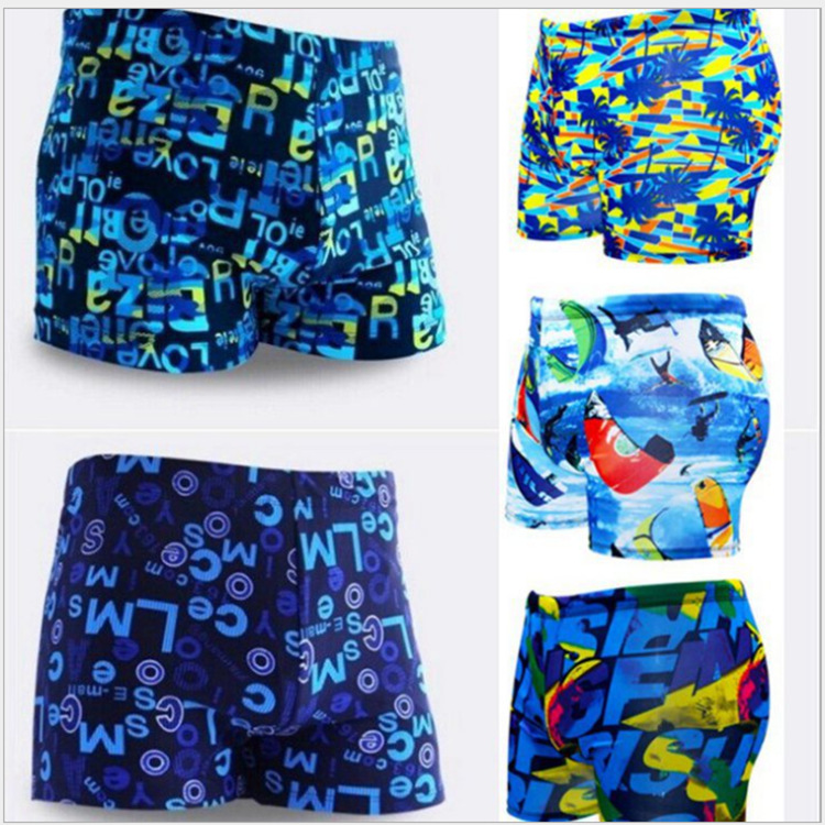 男式泳裤印花涤纶温泉泳装男大码时尚字母平角多色游泳馆泳裤厂家